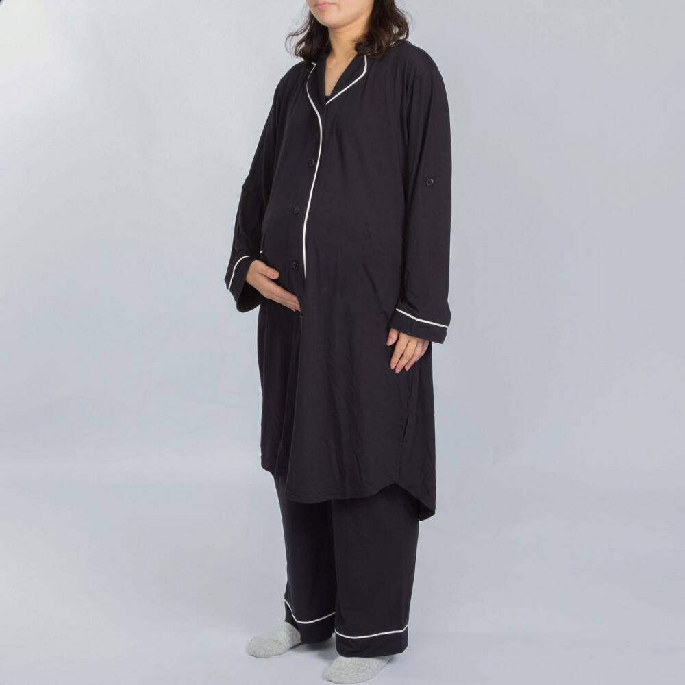 長袖パジャマ テーラー ストレッチ天竺(ブラック×M-L)