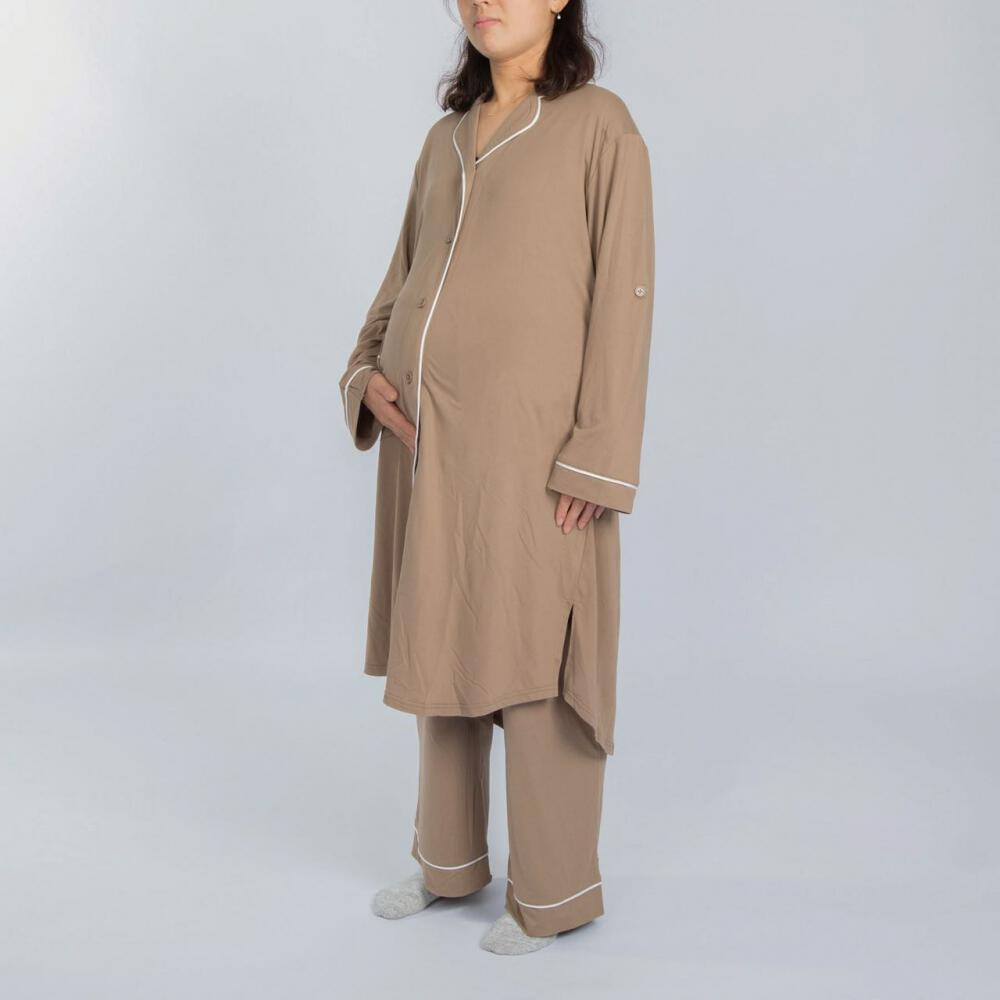 長袖パジャマ テーラー ストレッチ天竺(ブラウン×M-L)