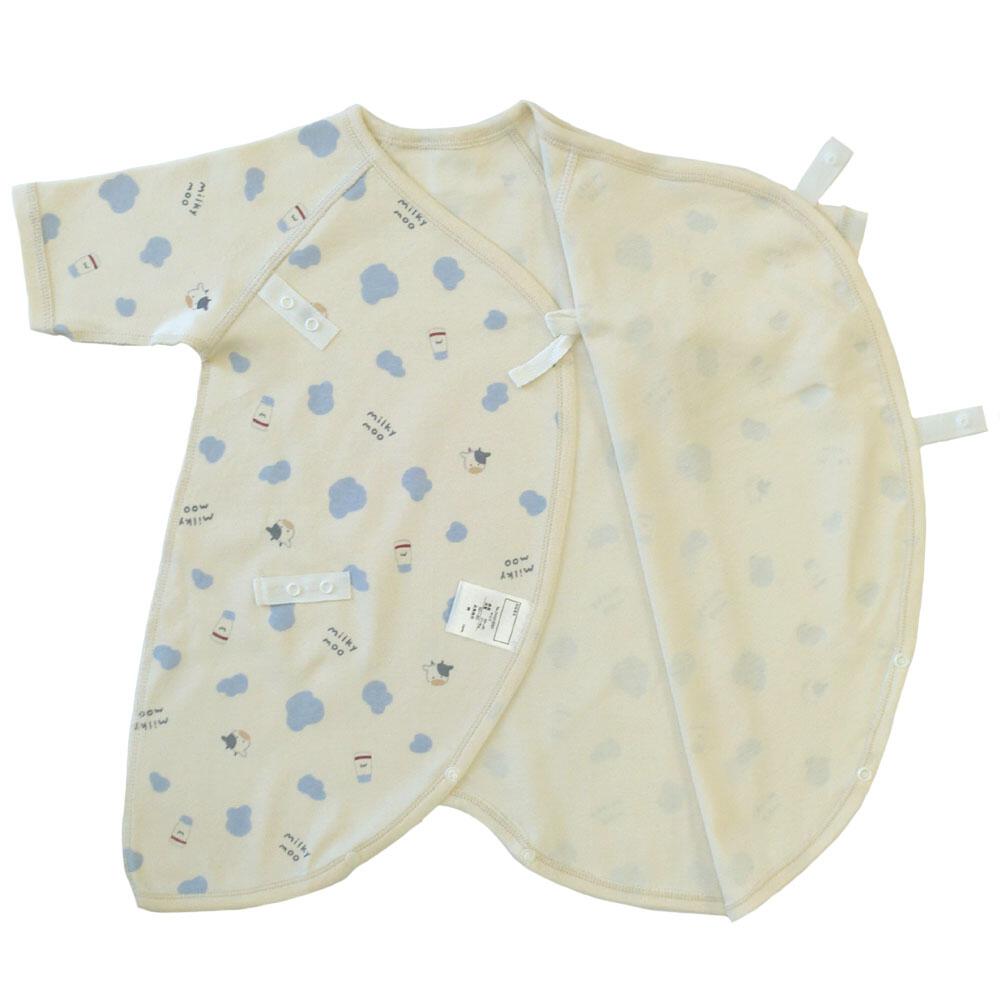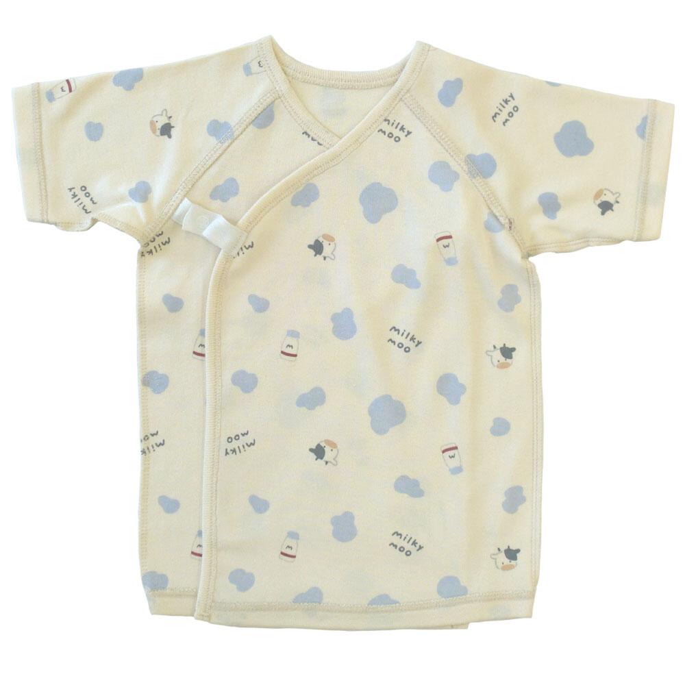 新生児肌着 5枚組 牛×格子(パステルブルー×50-60m)