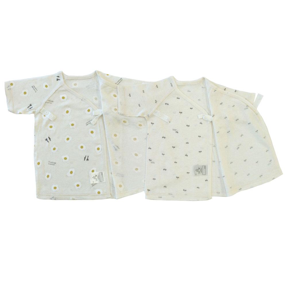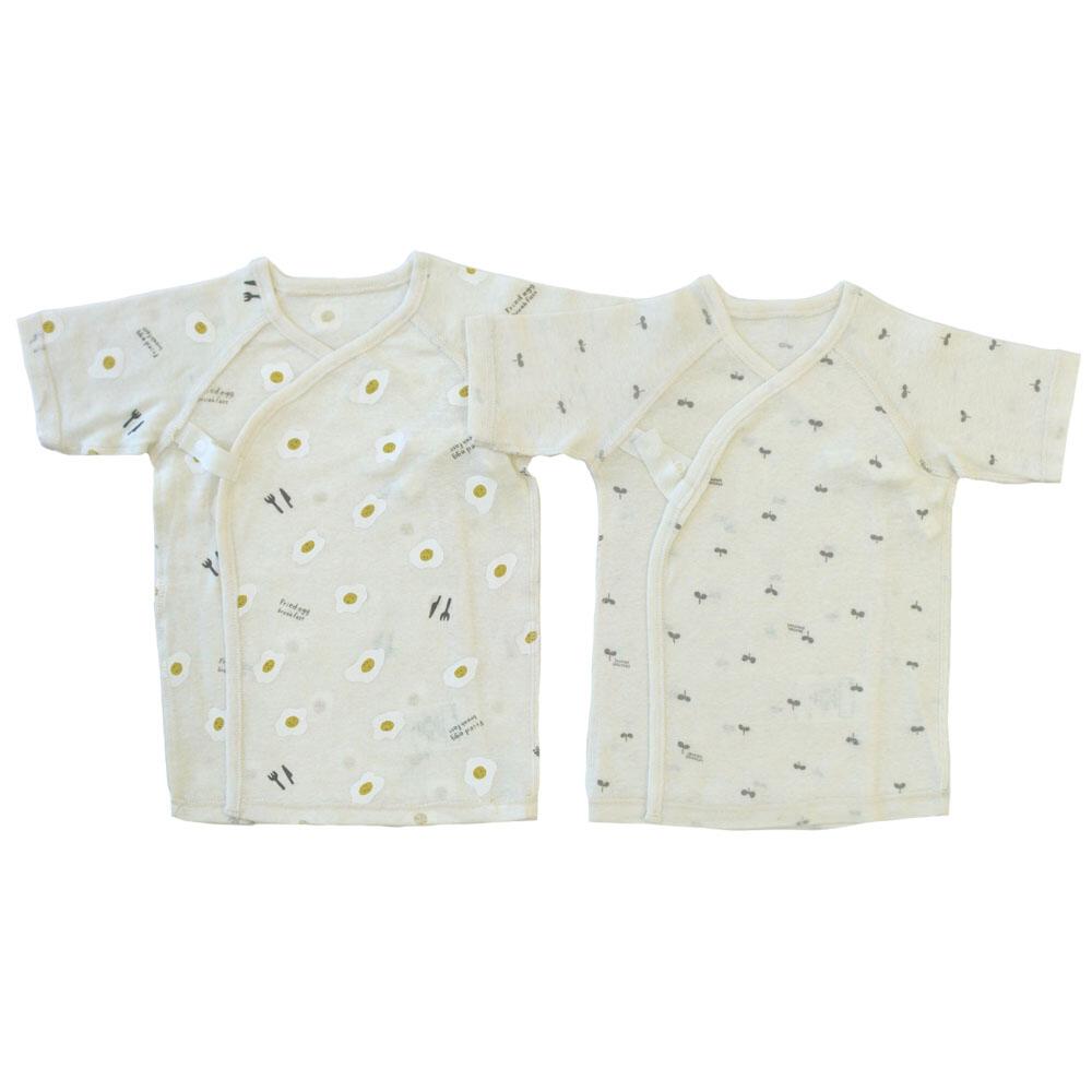 新生児短肌着 2枚組 目玉焼き×新芽(パステルイエロ×50-60m)