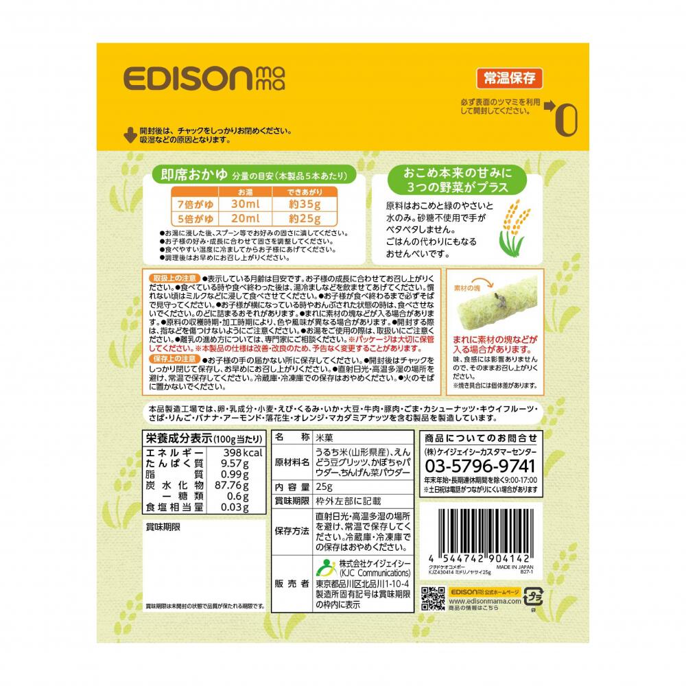 EDISONmama エジソンママ くちどけおこめぼー 緑のやさい 【乳児用規格適用食品 離乳食 ベビーフード】【7ヶ月~】