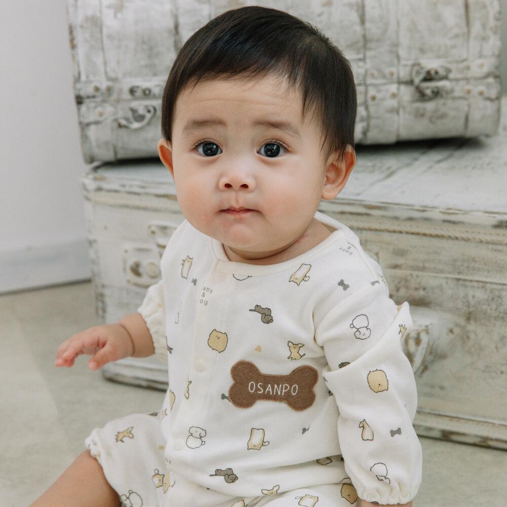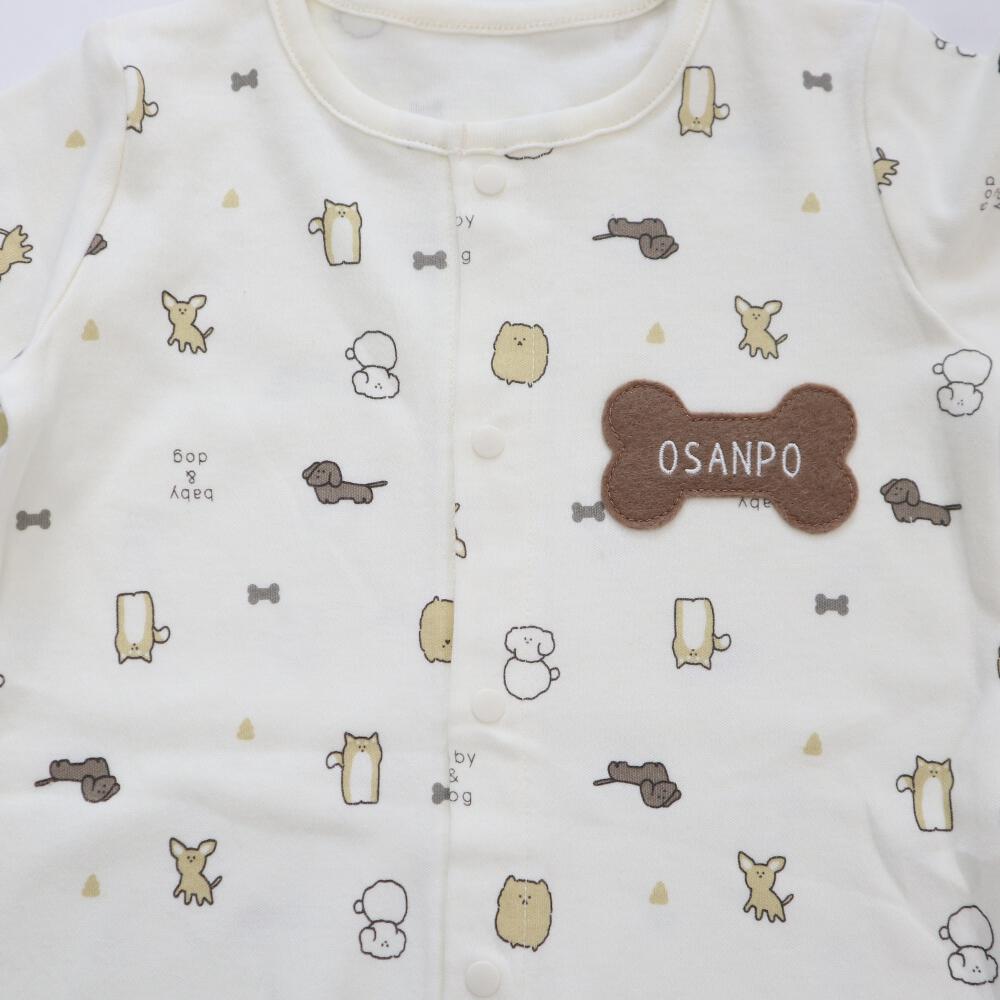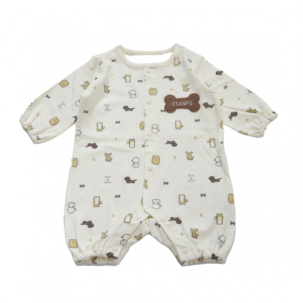 【ベビー×ペットコレクション】長袖前開きフィットオール 犬総柄(ホワイト×60-70cm) ベビーザらス限定