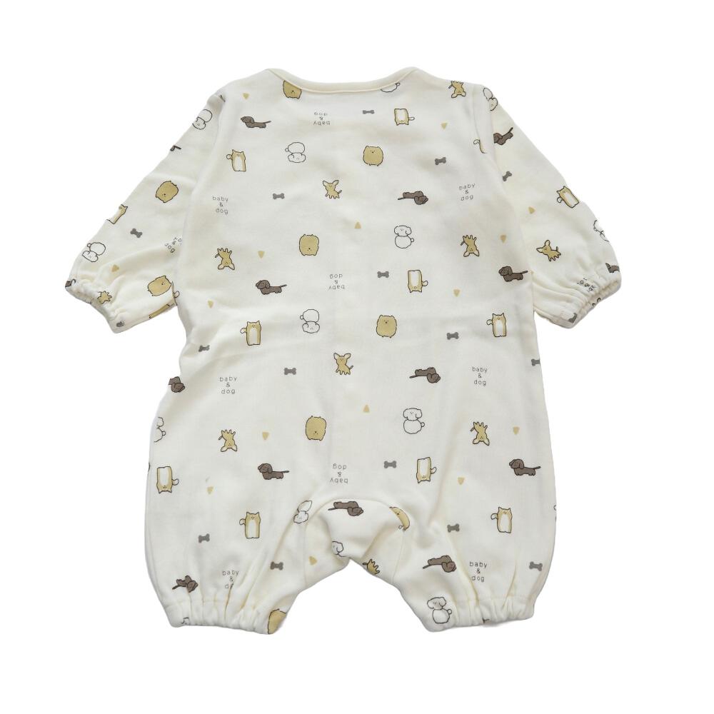【ベビー×ペットコレクション】長袖前開きフィットオール 犬総柄(ホワイト×70-80cm) ベビーザらス限定