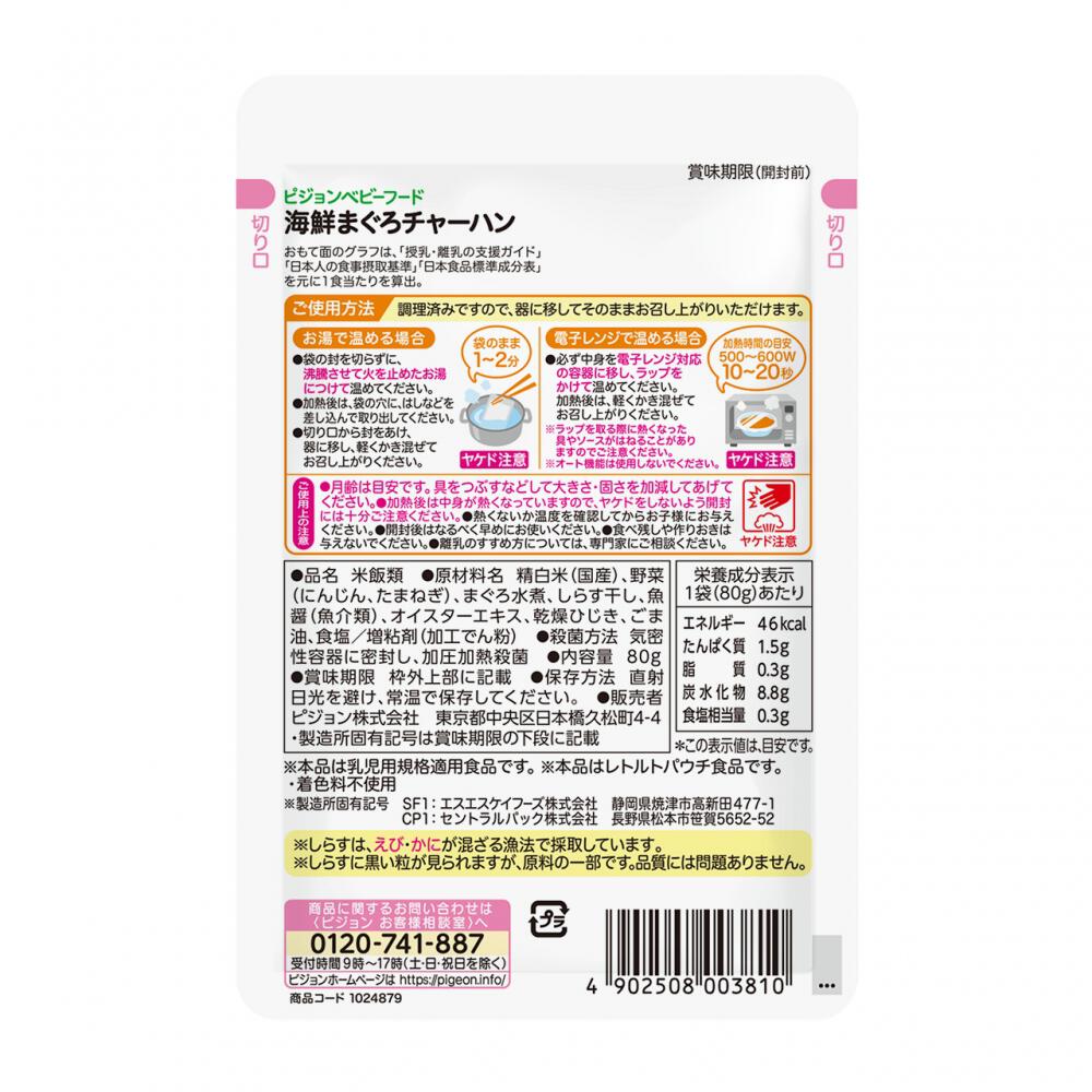 精白米(国産)、野菜(にんじん、たまねぎ)、まぐろ水煮、しらす干し、魚醤(魚介類)、オイスターエキス、乾燥ひじき、ごま油、食塩/増粘剤(加工でん粉)