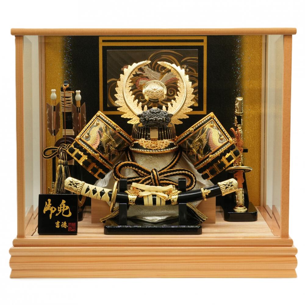 【五月人形】兜飾り ケース飾り「徳川家康歯朶の葉前立て木目調」(538109)コンパクト 男の子 端午の節句 トイザらス・ベビーザらス限定【メーカー直送】