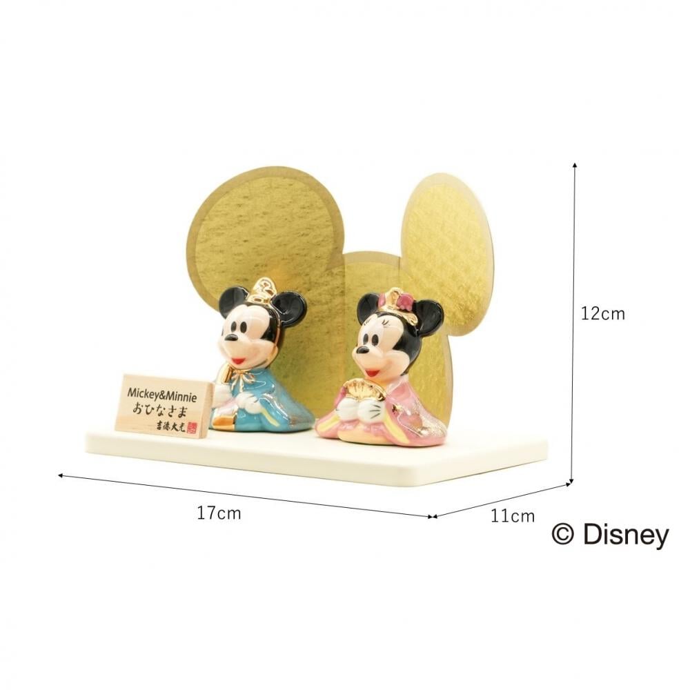 優しい色合いに仕上げた磁器のお人形に、ミッキー型の金屏風を合わせた上品なデザイン。