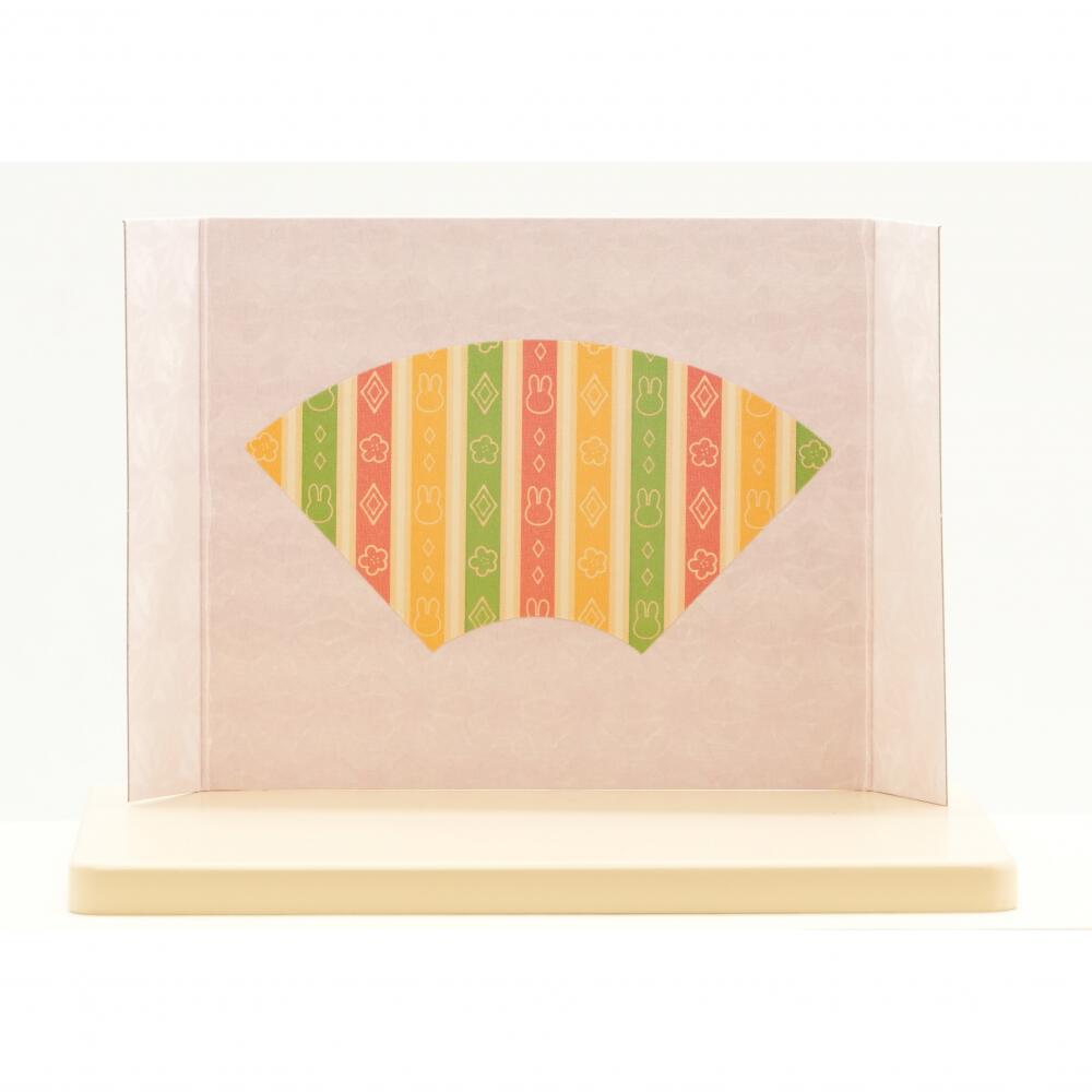 磁器で出来たお人形をシンプルな飾り台とミッフィーの柄の屏風にセットました。