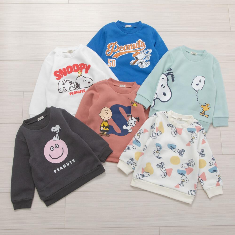 SNOOPY スヌーピー 長袖デイリートレーナー 起毛 スマイル(チャコール×80cm)