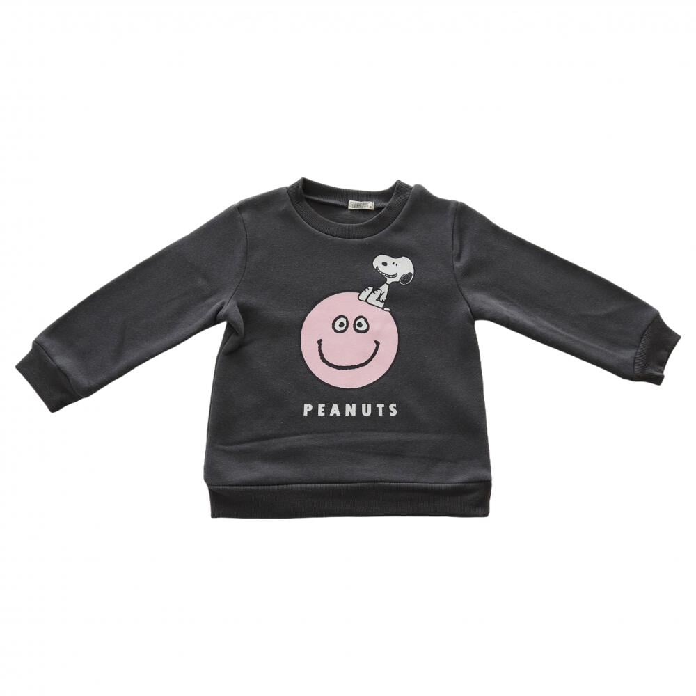 SNOOPY スヌーピー 長袖デイリートレーナー 起毛 スマイル(チャコール×90cm)
