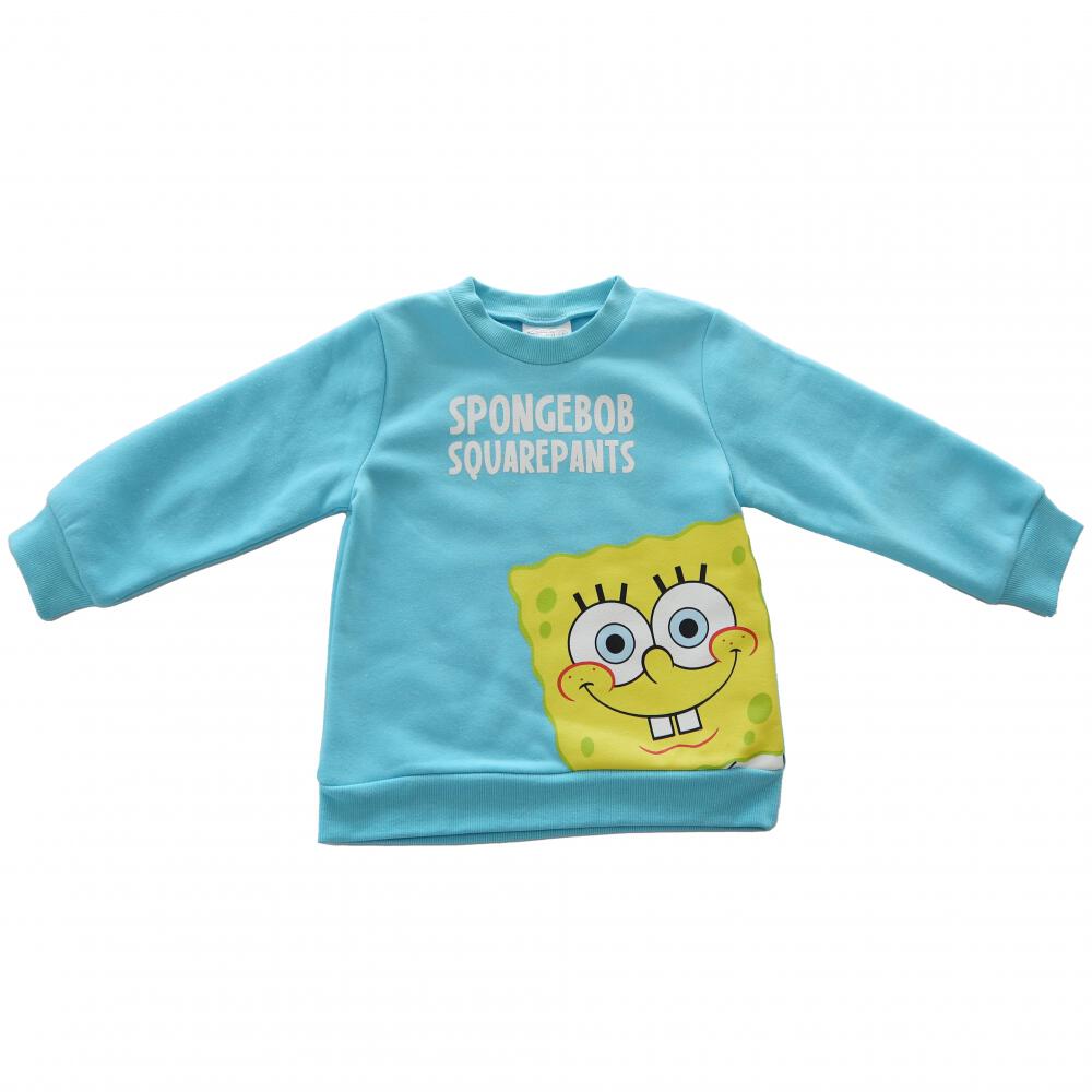 スポンジボブ 長袖デイリートレーナー 起毛 ビッグプリント(ブルー×80cm)