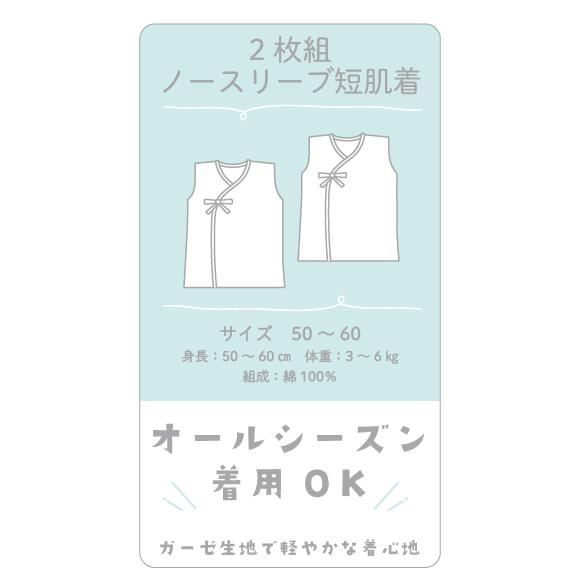 日本製 ノースリーブガーゼ短肌着 2枚組 ひもタイプ