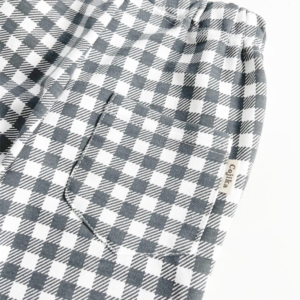 COJIKA 10分丈デイリーパンツ ギンガム格子 ミニ裏毛 グレー 80cm