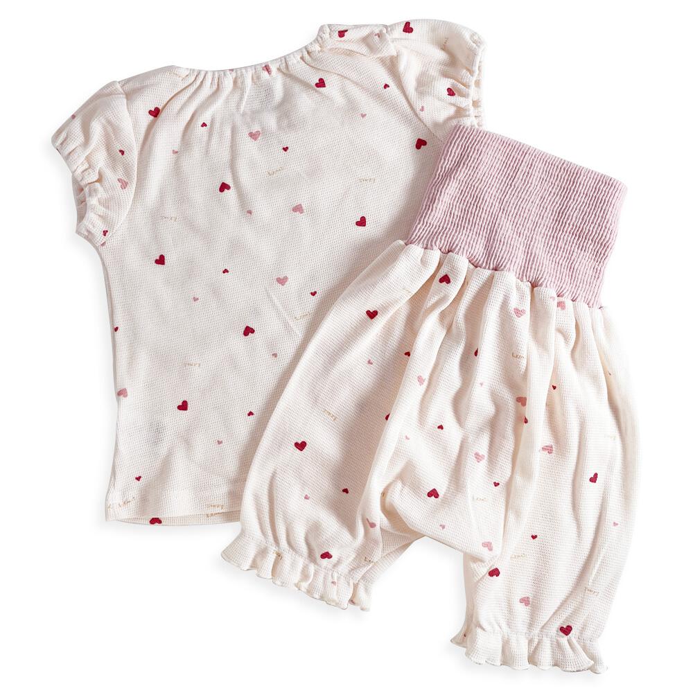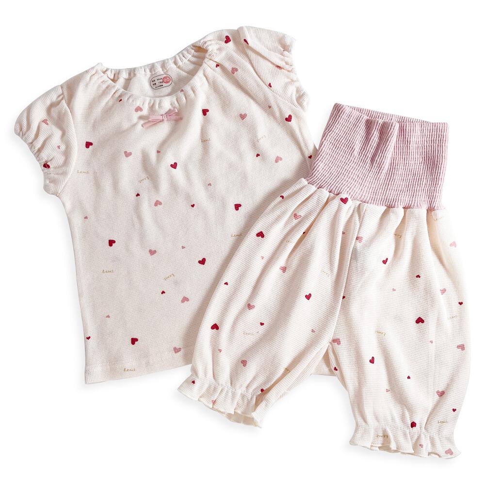 半袖腹巻付きパジャマ 鹿の子天竺 ハート柄 ピンク 80cm