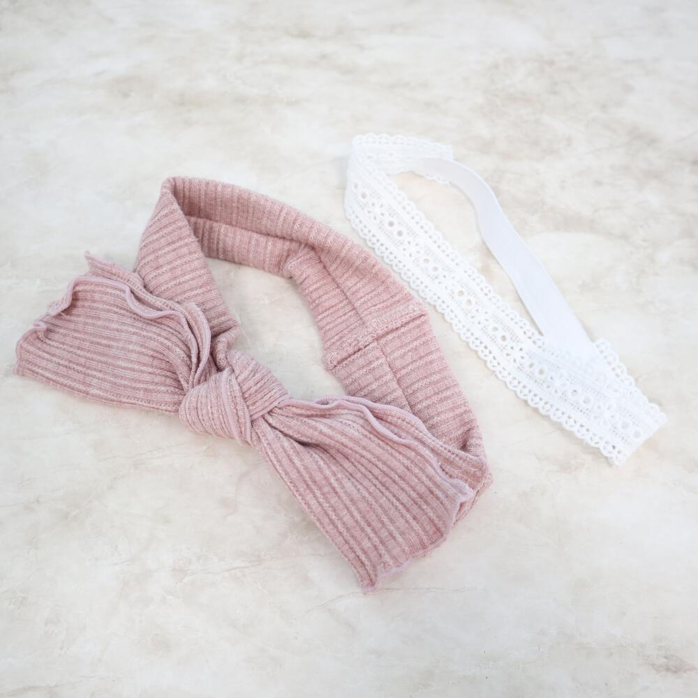 RAT-A-TATR ラッタッター ベビーヘアバンドセット 2本組 リブ レース ピンク