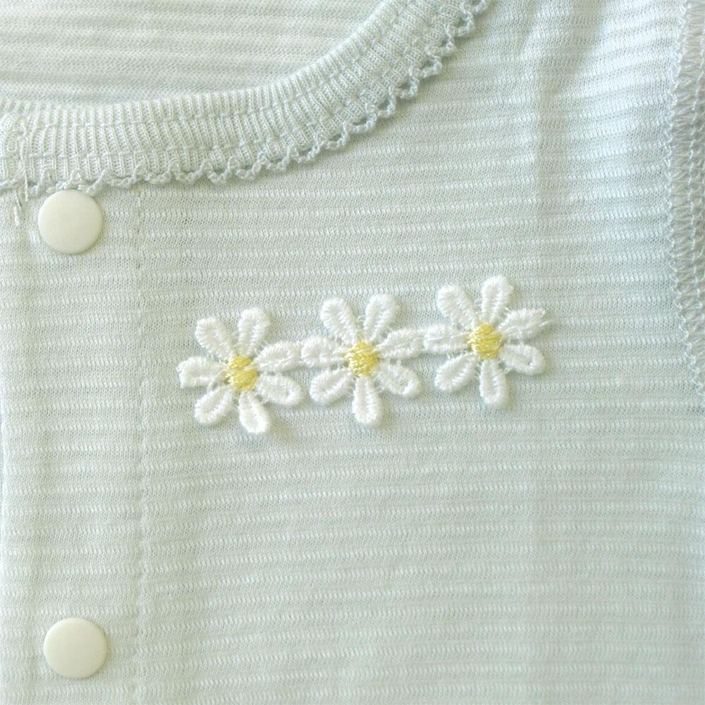 2枚組 涼感半袖前開きロンパース肌着 シースルー 花 グリーン×60cm