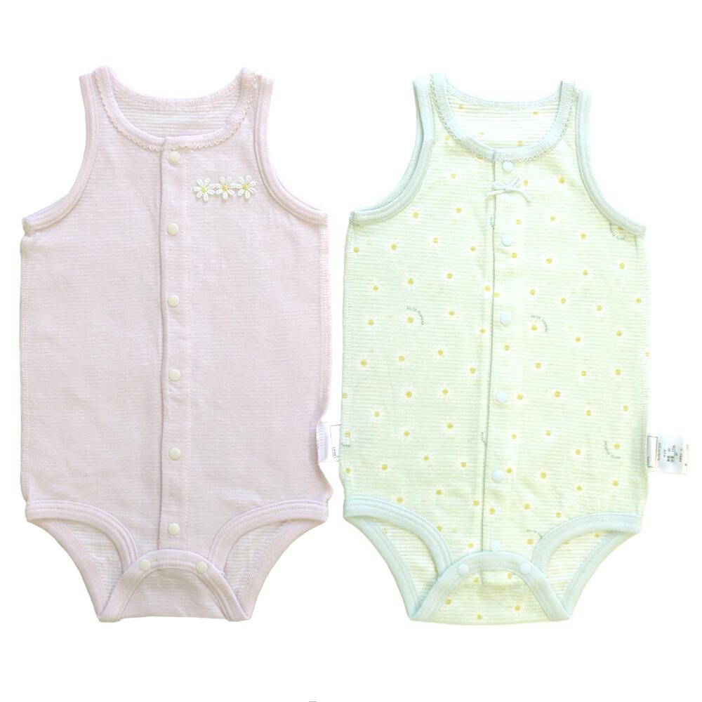 2枚組 涼感袖なし前開きロンパース肌着 シースルー 花 サックス×70cm