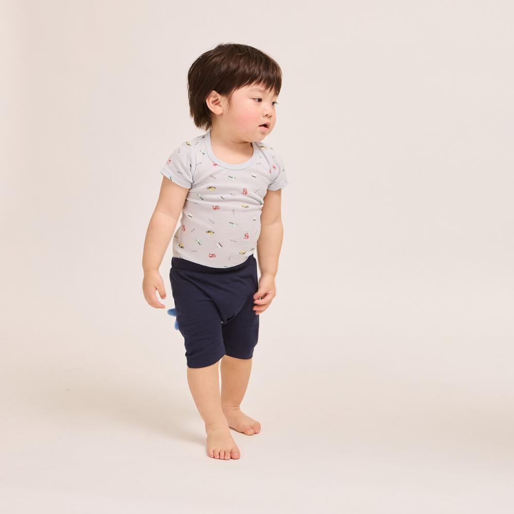 2枚組 抗菌半袖シャツ肌着 フライス 車 ブルー×90cm