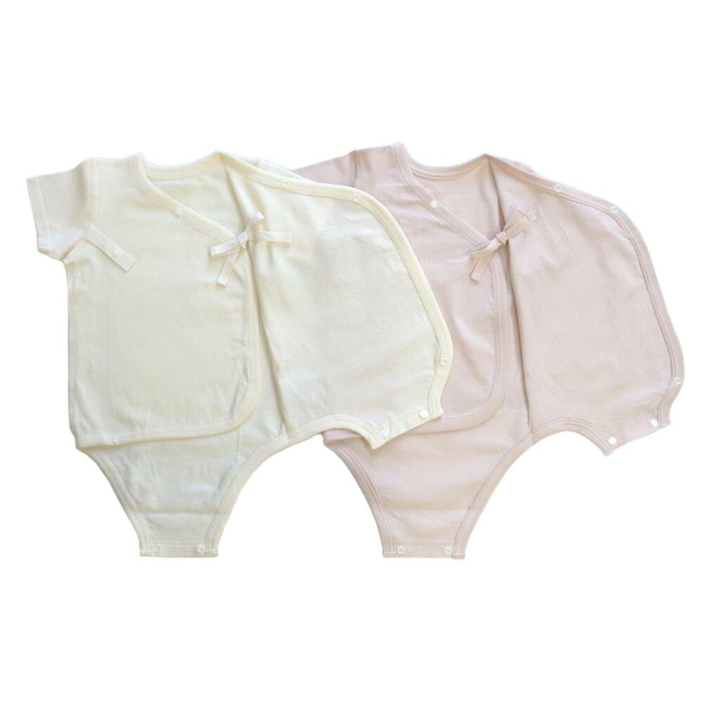 2枚組 半袖打ち合わせロンパース肌着 メッシュ ピンク×70cm