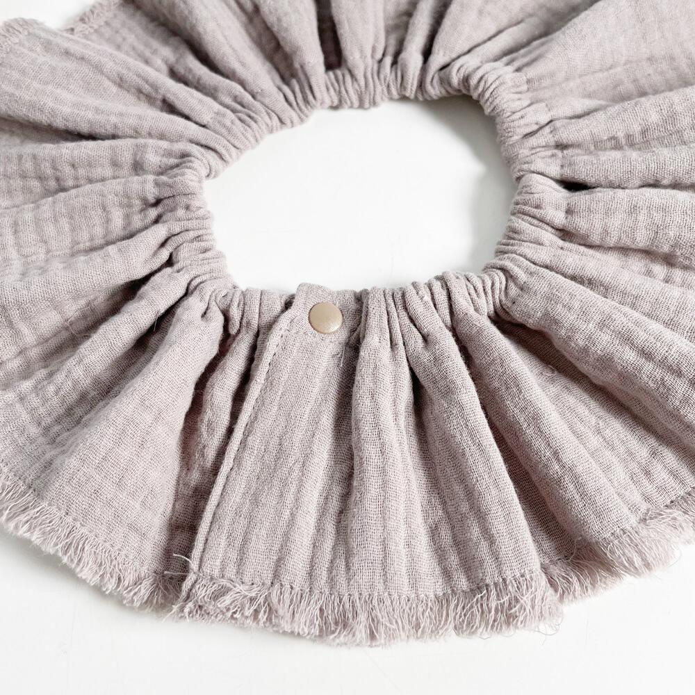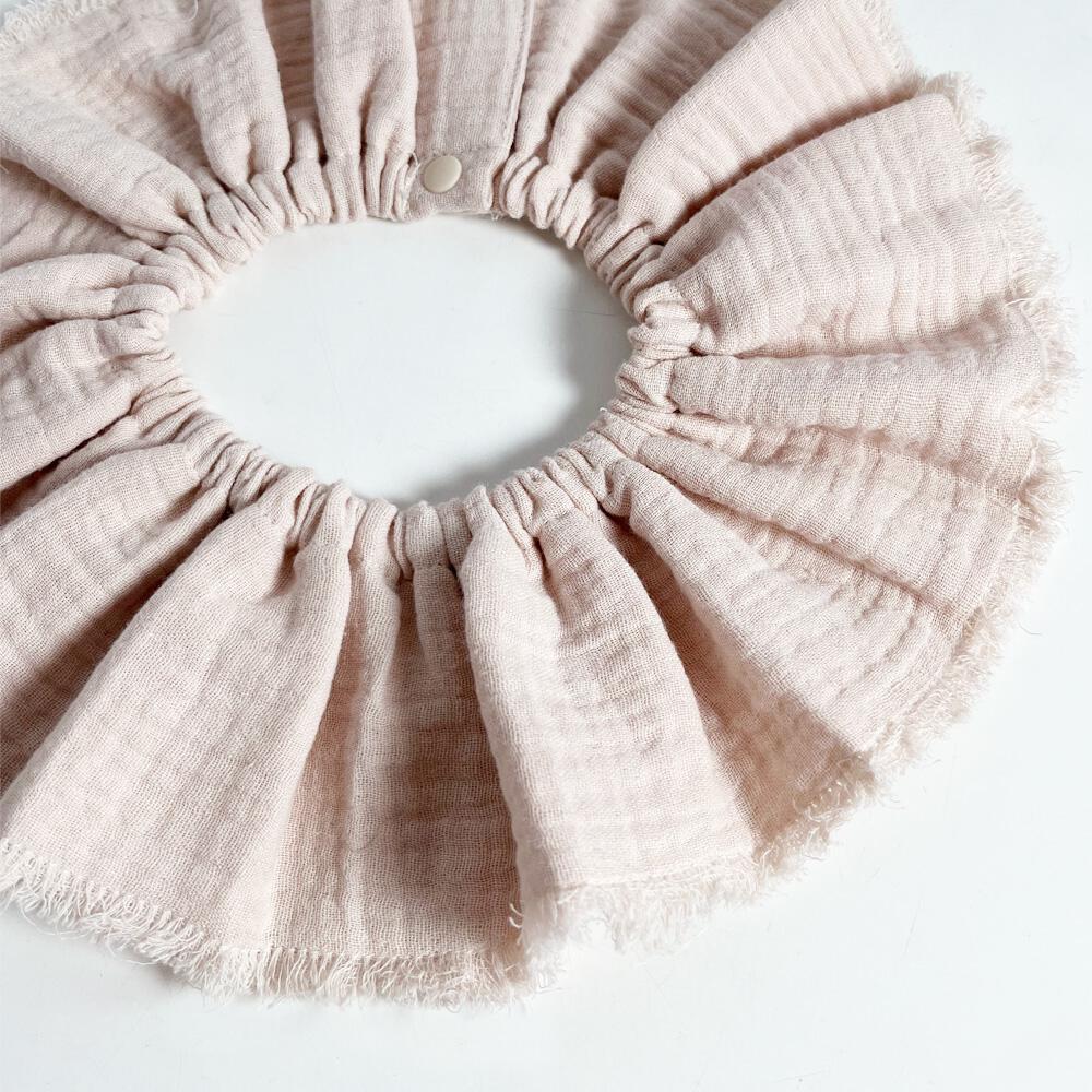 ガーゼ素材の優しい風合いのスタイです。汚れても360度ぐるっと回して使用して頂けます。可愛くつけ襟風に使用して頂くこともできます。プレゼントにも最適です。<仕様>スナップボタン留め