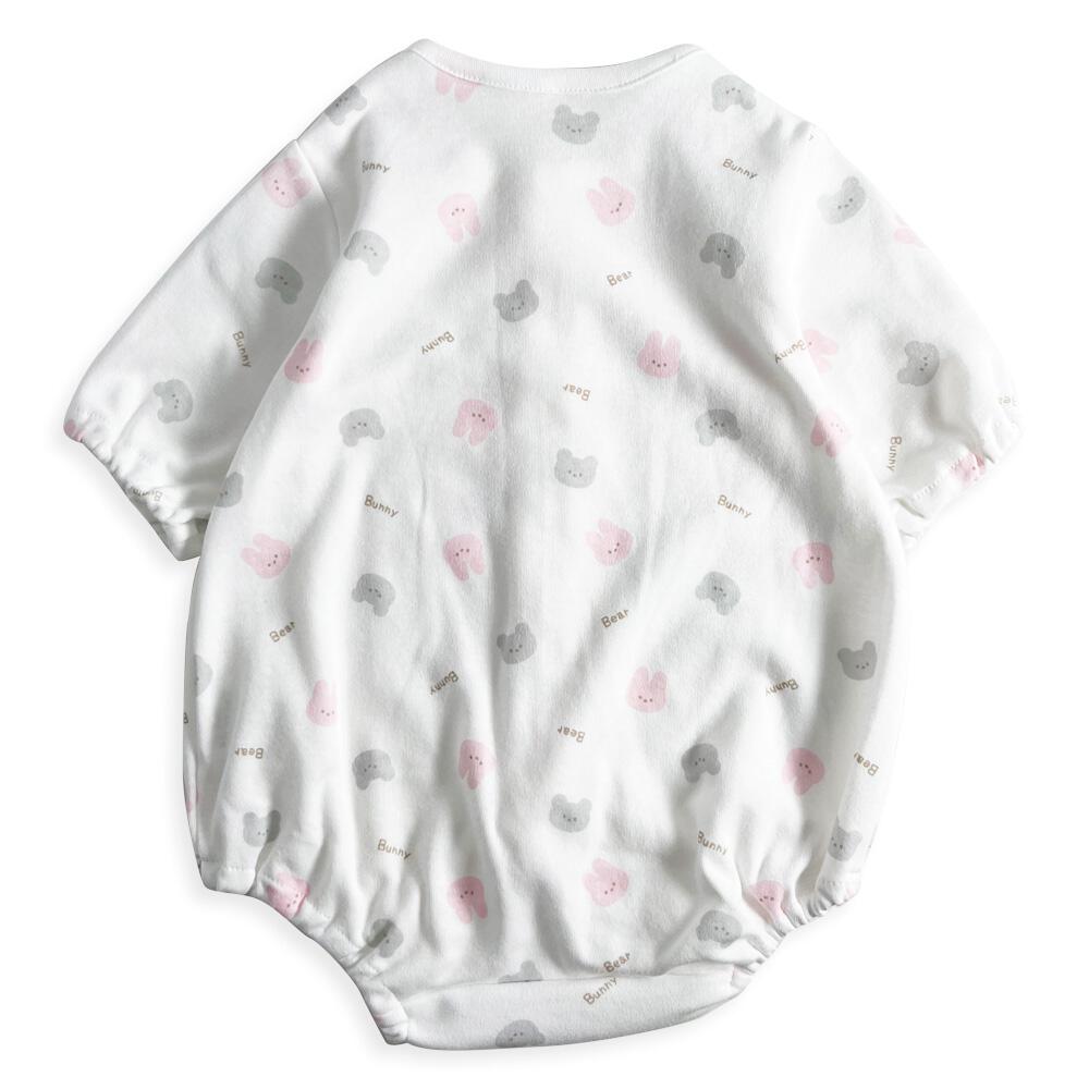 日本製7分袖ロンパス スムス くまうさ柄 ナチュラル 50-60cm