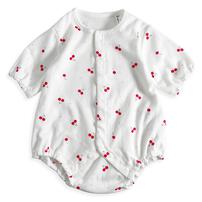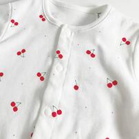 日本製7分袖ロンパス スムス チェリー柄 ナチュラル×60-70cm