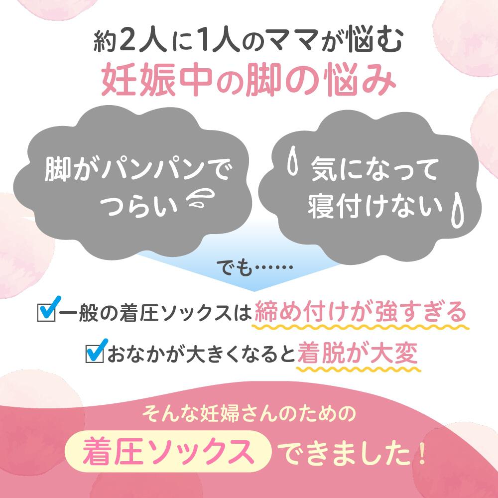 ふくらはぎを下からググッと持ち上げる独自の編地で締め付けがツライ妊娠期~産後も、ほどよく引き締め脚スッキリ