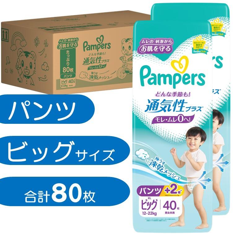 パンパース 通気性プラス パンツ ビッグサイズ (12~22kg) 80枚(40枚×2パック)箱入り 【P&G パンツタイプ おむつ】
