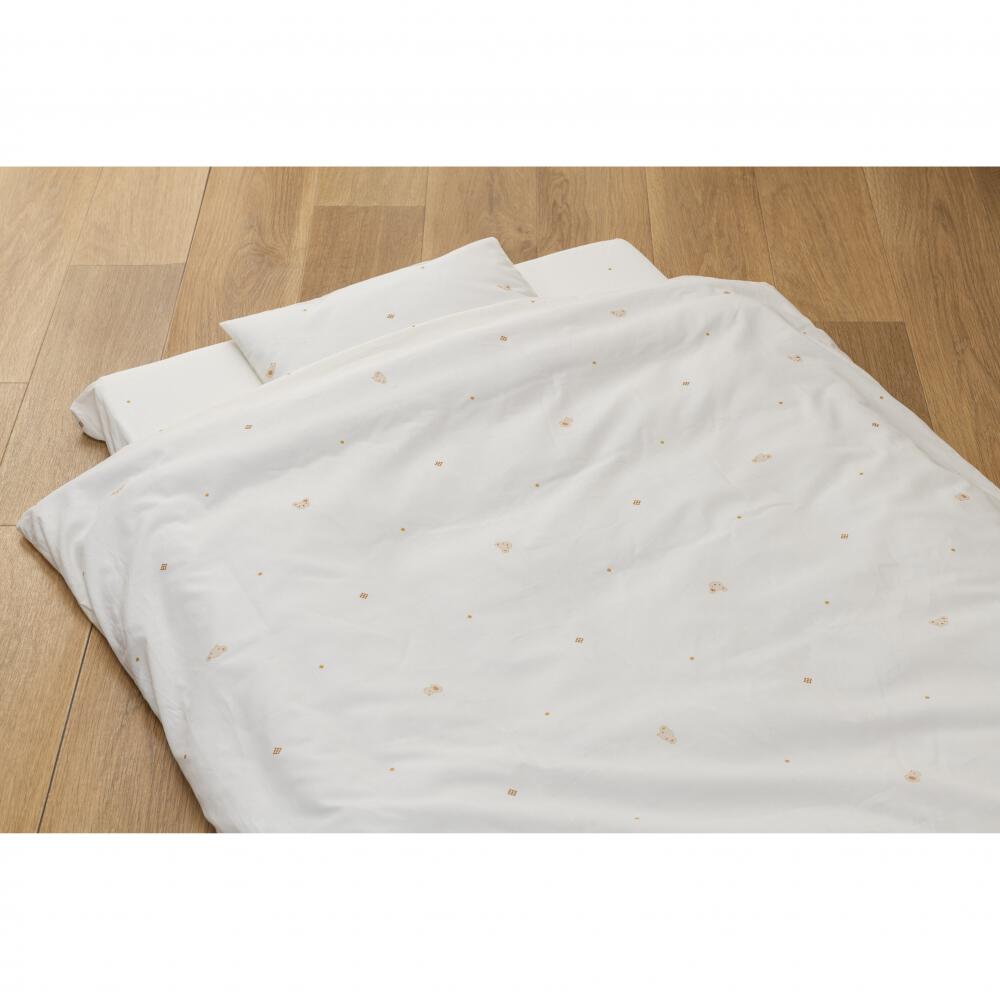 ふとん側生地・カバーシーツ生地は綿100% ムレにくく、汗かきな赤ちゃんに適しています。