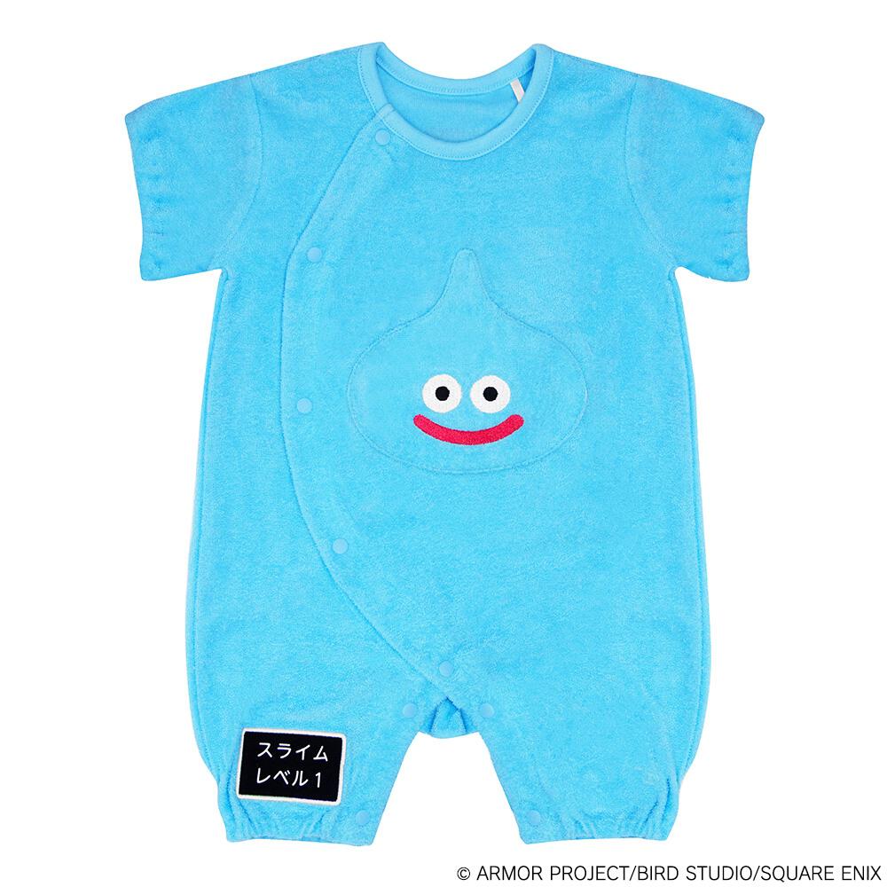 ドラクエベビー&キッズ 半袖フィットオール スライム メタルスライムのラトル付き(ブルー×60-70cm)