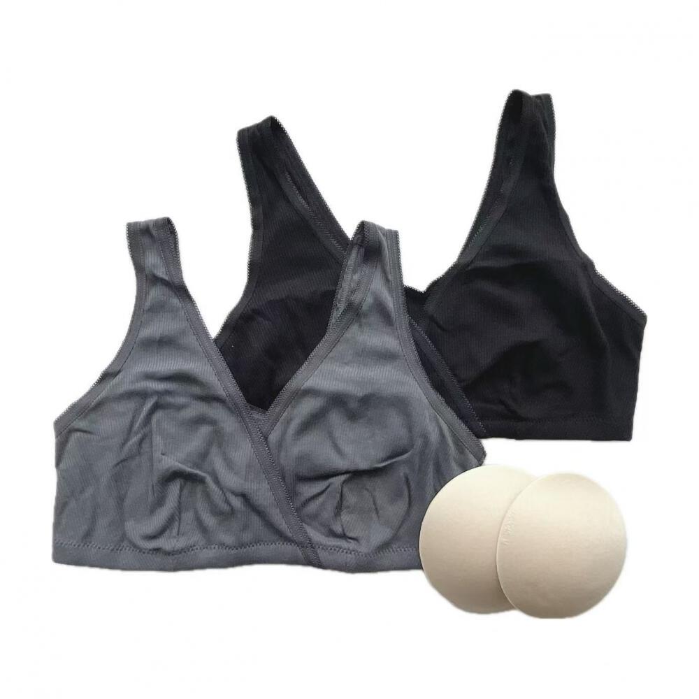 ハーフトップ リブ編み 2枚組 チャコール×L MU