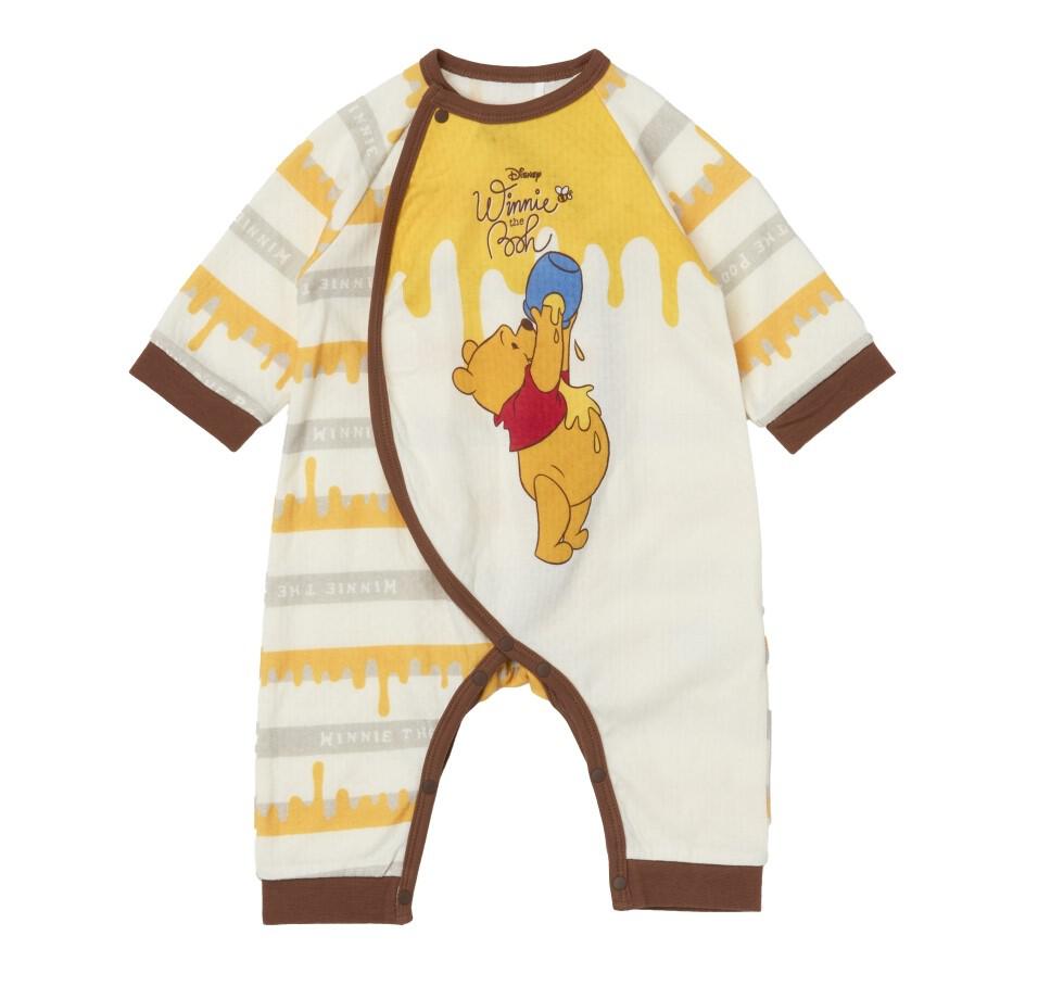 Disney ディズニー 長袖前開きロンパース おしり顔 くまのプーさん ナチュラル×60-70cm)