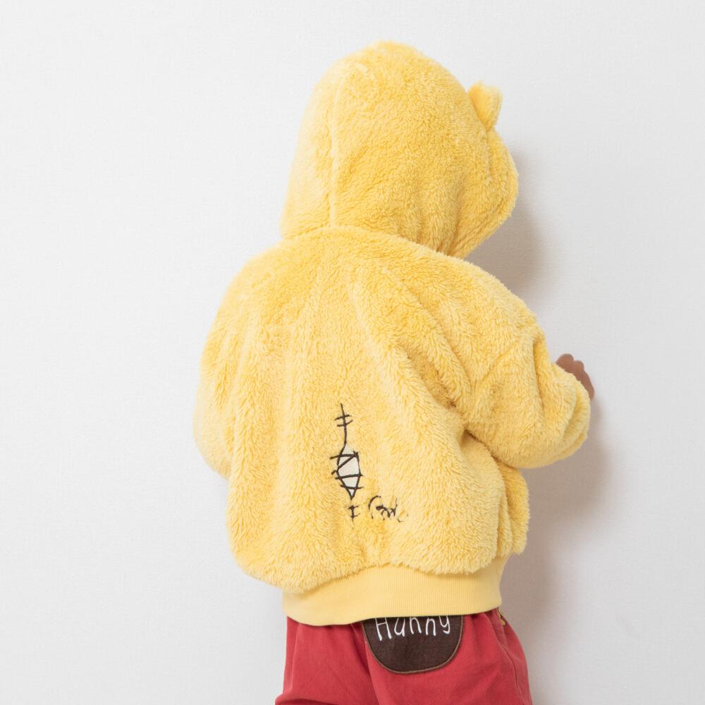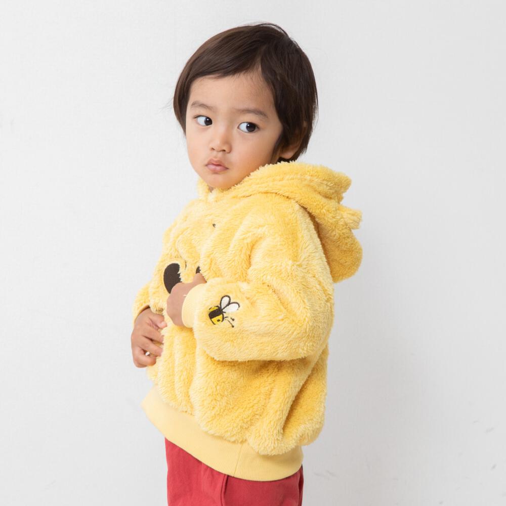 ディズニー くまのプーさん フード付き 長袖トレーナー 顔どっかん ボア(イエロー×80cm)