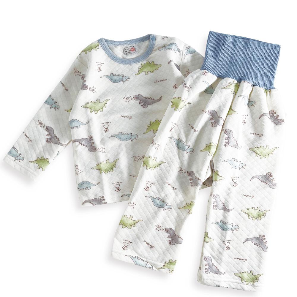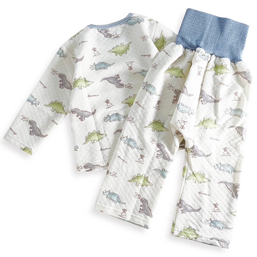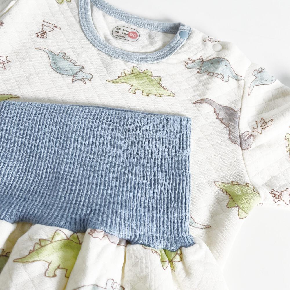 お腹を冷やさない腹巻き付きデザインだから、寝ている間にパジャマがめくれても安心。