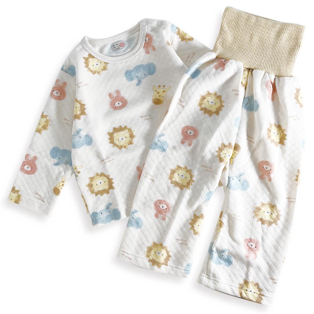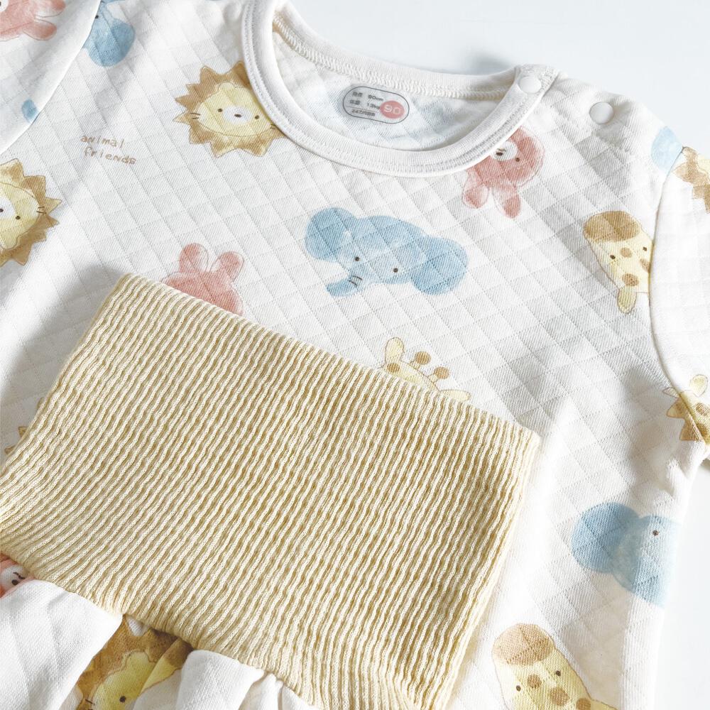 長袖腹巻付きパジャマ ニットキルト アニマル柄 アイボリー×80cm ベビーザらス限定