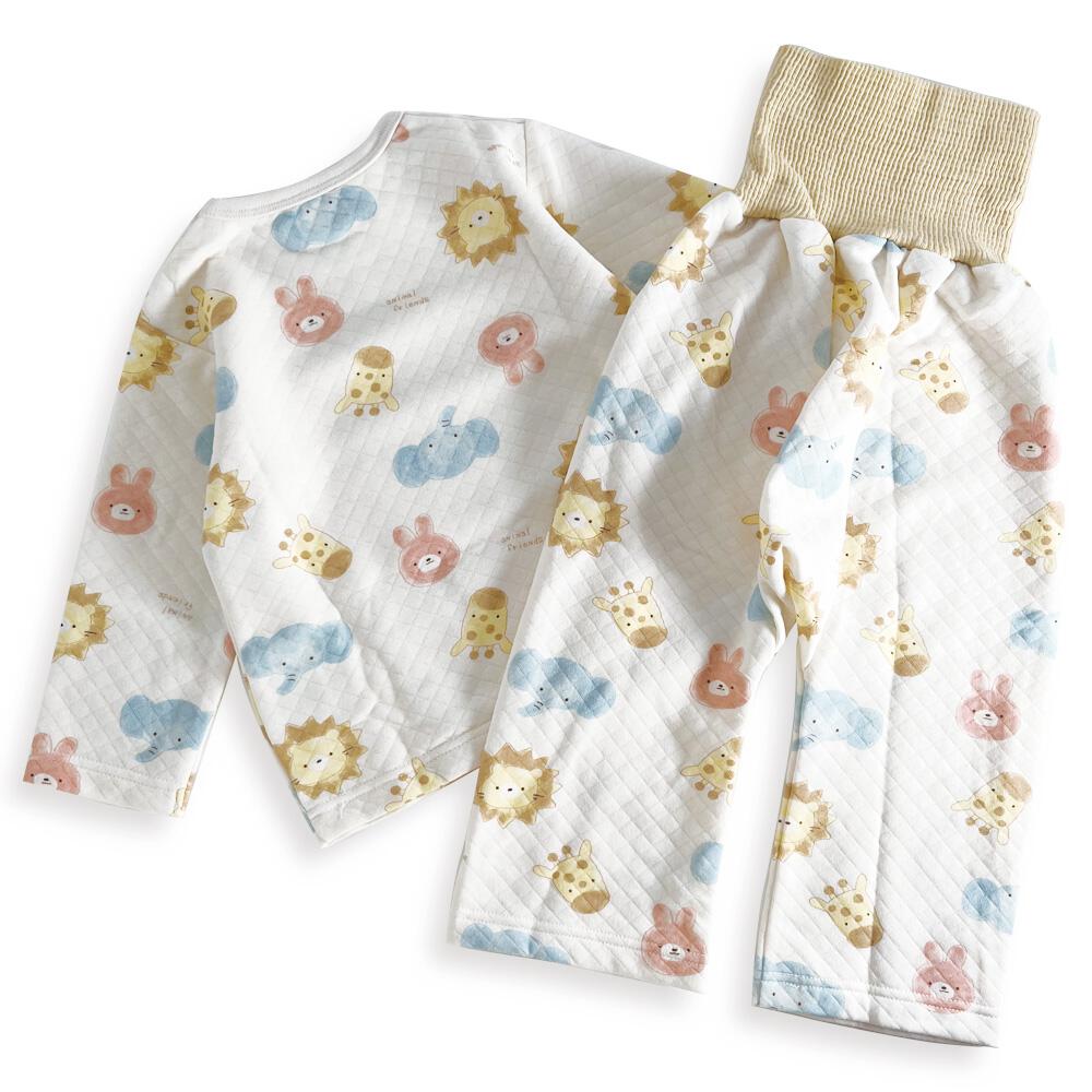 長袖腹巻付きパジャマ ニットキルト アニマル柄 アイボリー×90cm ベビーザらス限定