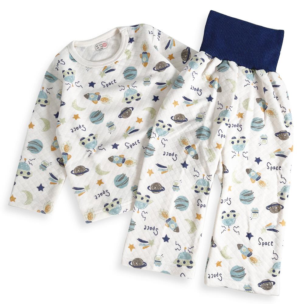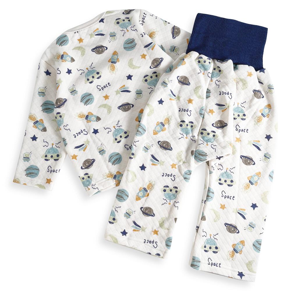 空気の層でやさしく包み込む、ふんわりあたたかなニットキルト素材を使用したパジャマです。