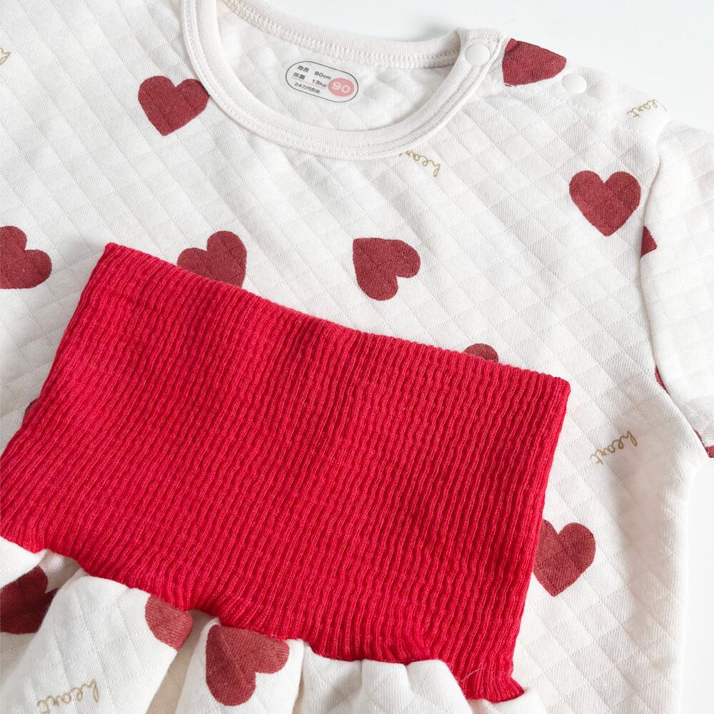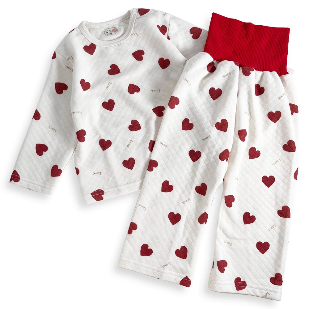 長袖腹巻付きパジャマ ニットキルト ハート柄 レッド×80cm ベビーザらス限定