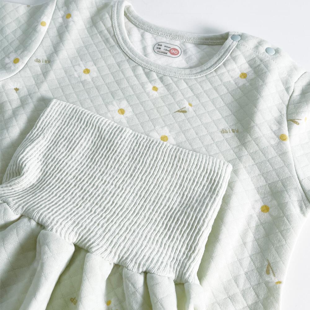 長袖腹巻付きパジャマ ニットキルト デイジー柄 ミントグリーン×80cm ベビーザらス限定