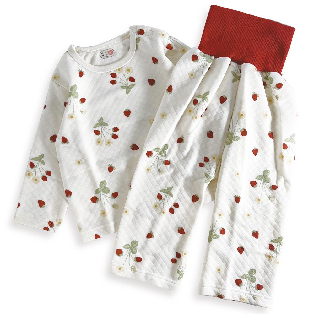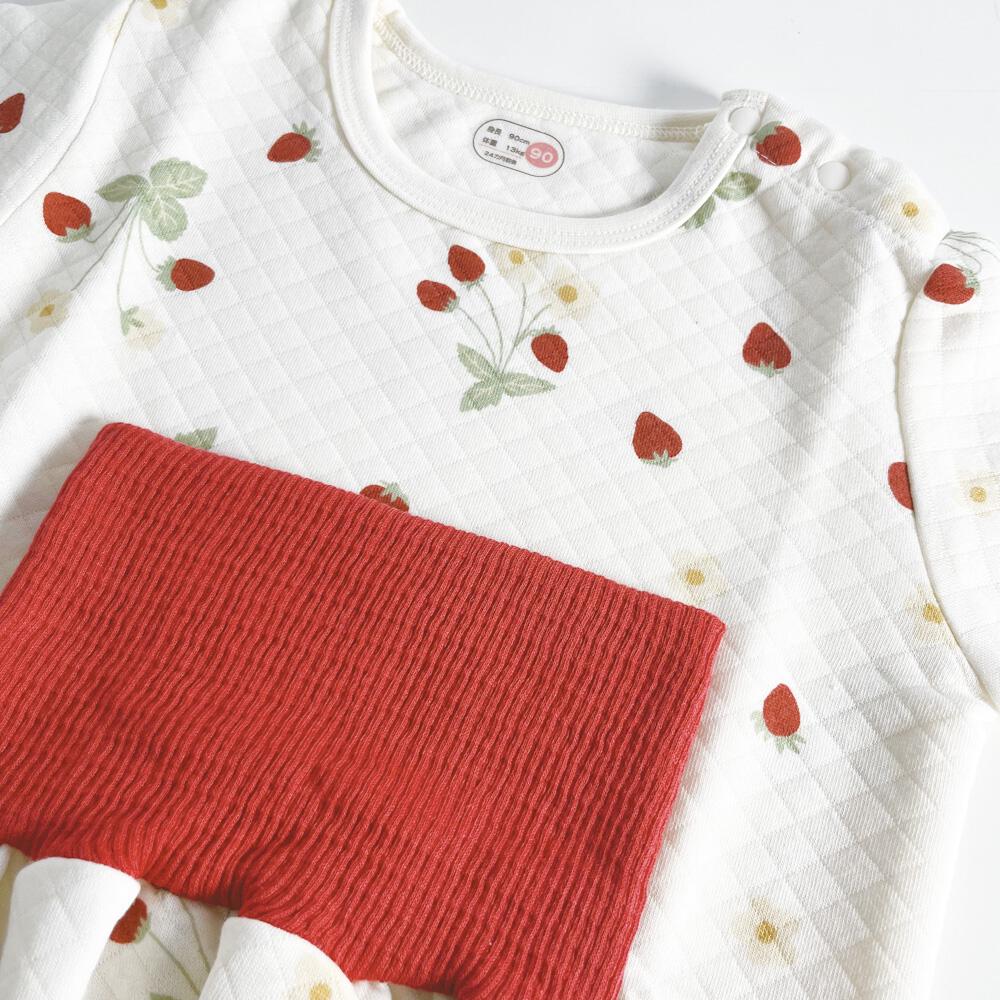 長袖腹巻付きパジャマ ニットキルト イチゴ柄 レッド×80cm ベビーザらス限定