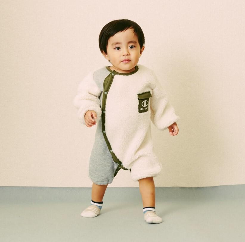 やわらかくてあったかいボアフりース素材のチャンピオンミニカバーオールです。