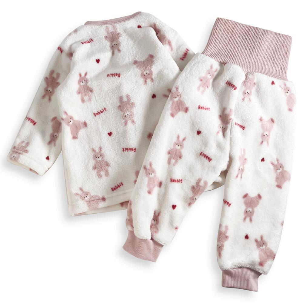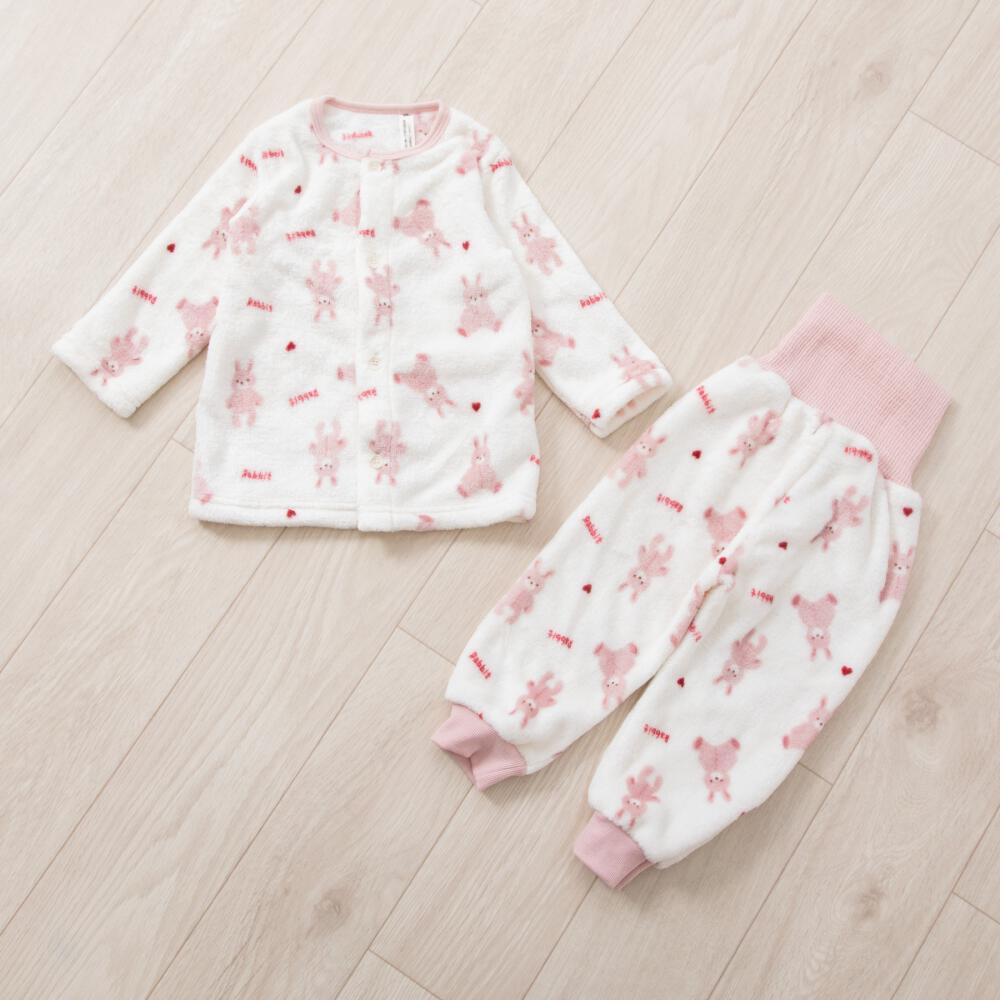 長袖腹巻パジャマ フリース ウサギ柄 ピンク×90cm
