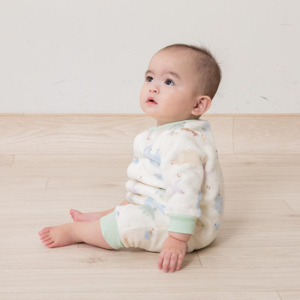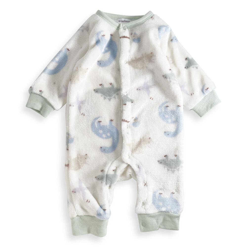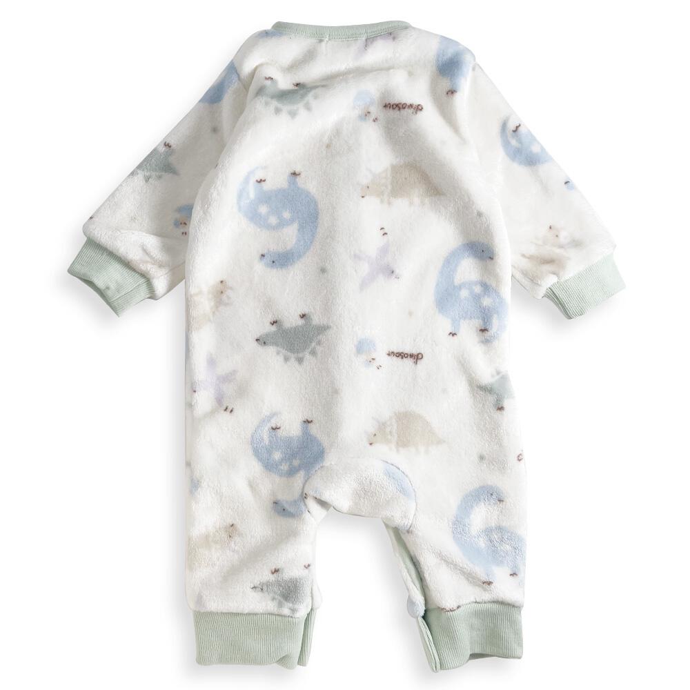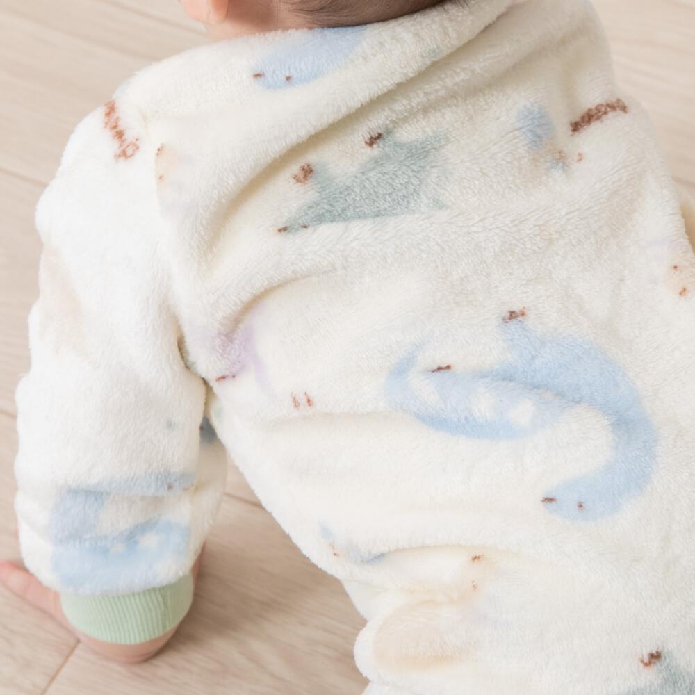 長袖カバーオール フリース 恐竜柄 グリーン×80cm