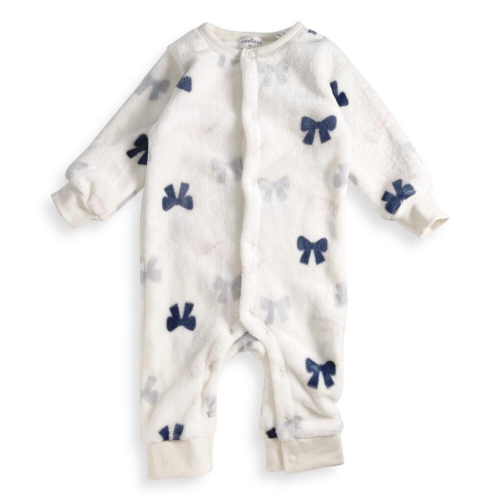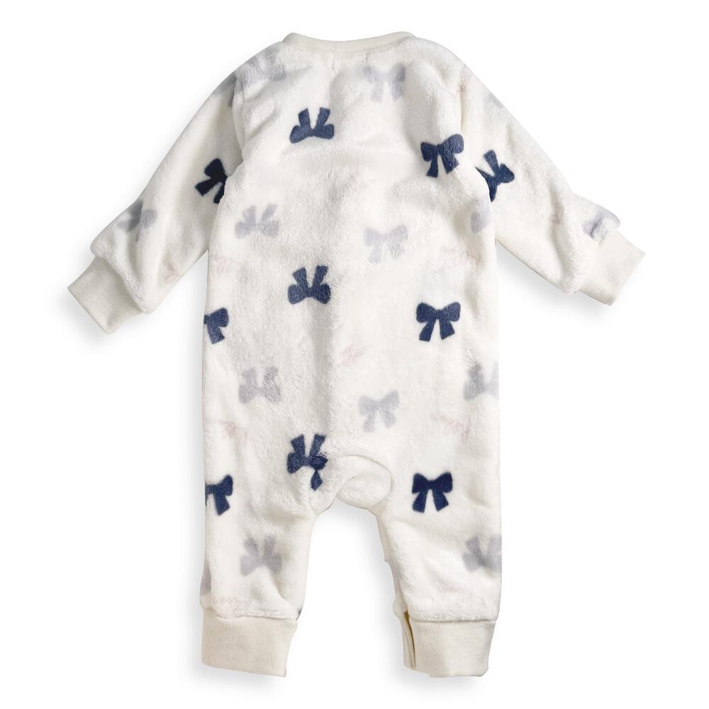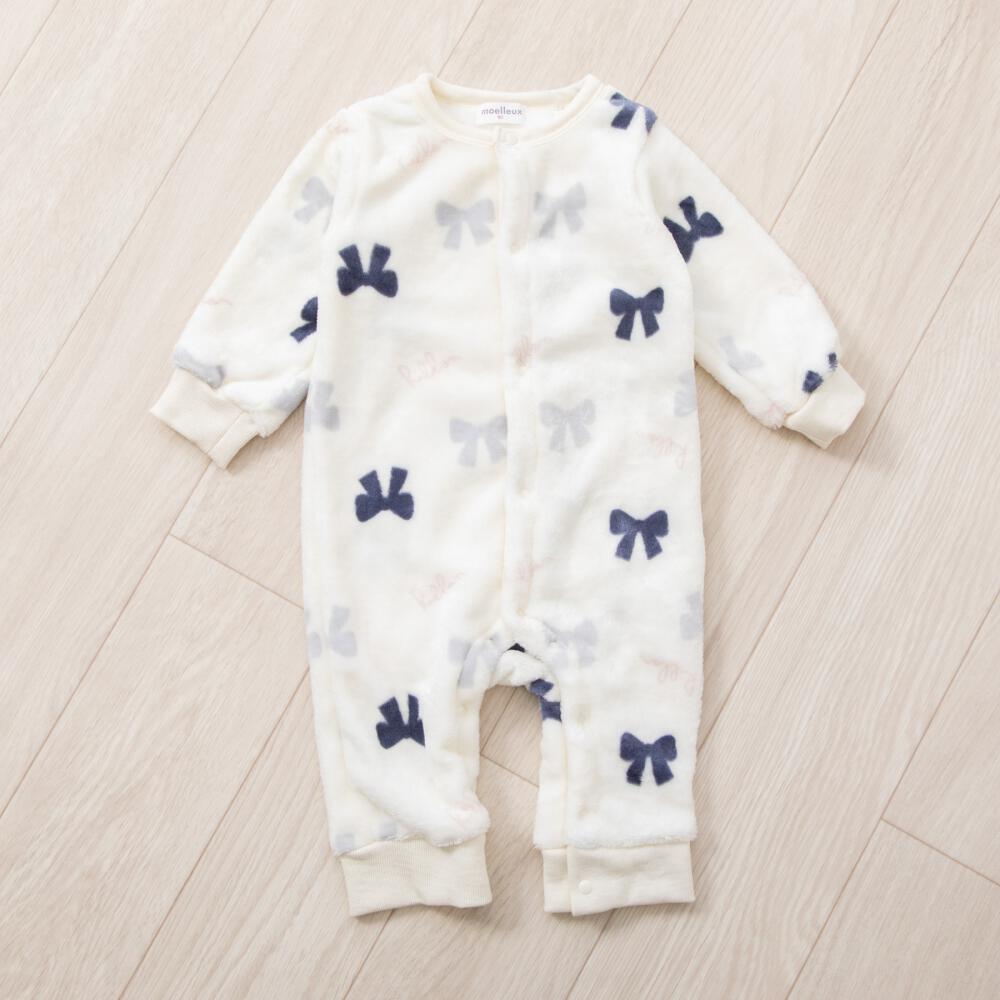 長袖カバーオール フリース リボン柄 グレー×70cm