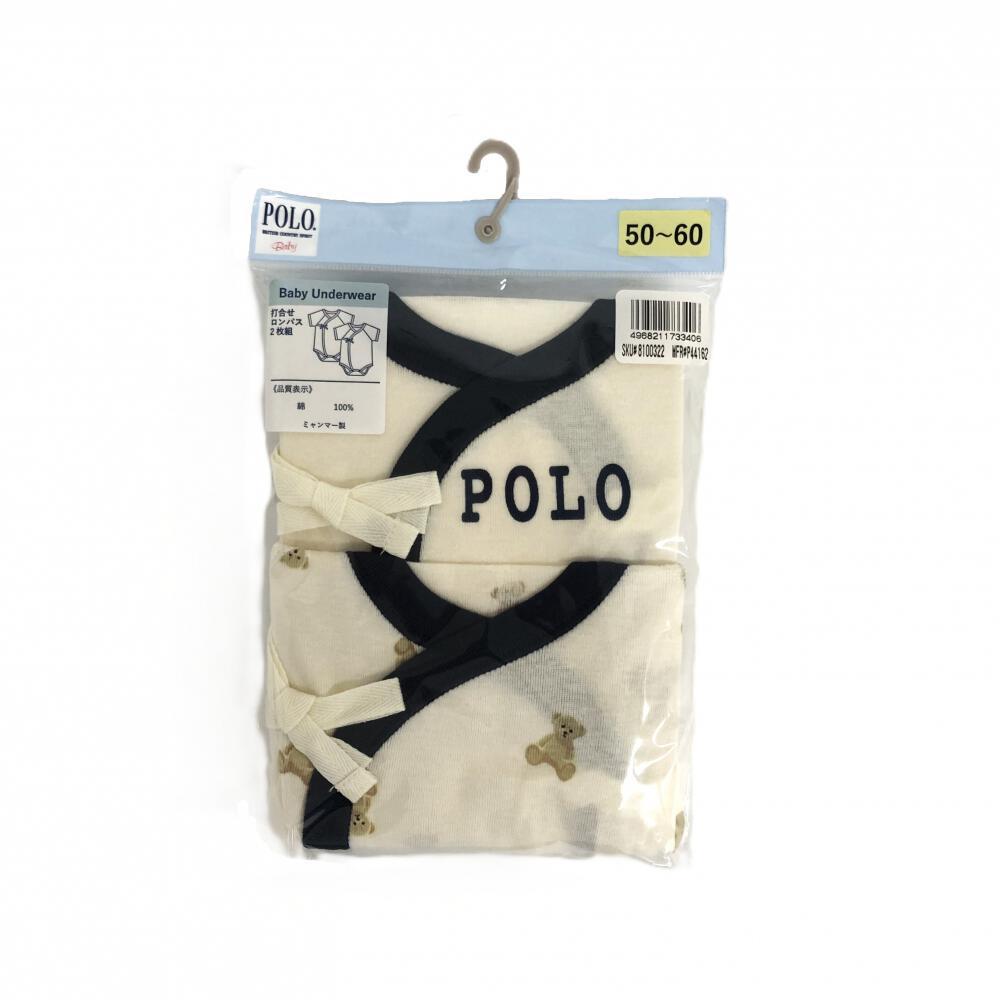POLO BCS 2枚組 新生児ロンパース肌着 ロゴクマ ナチュラル×50-60cm