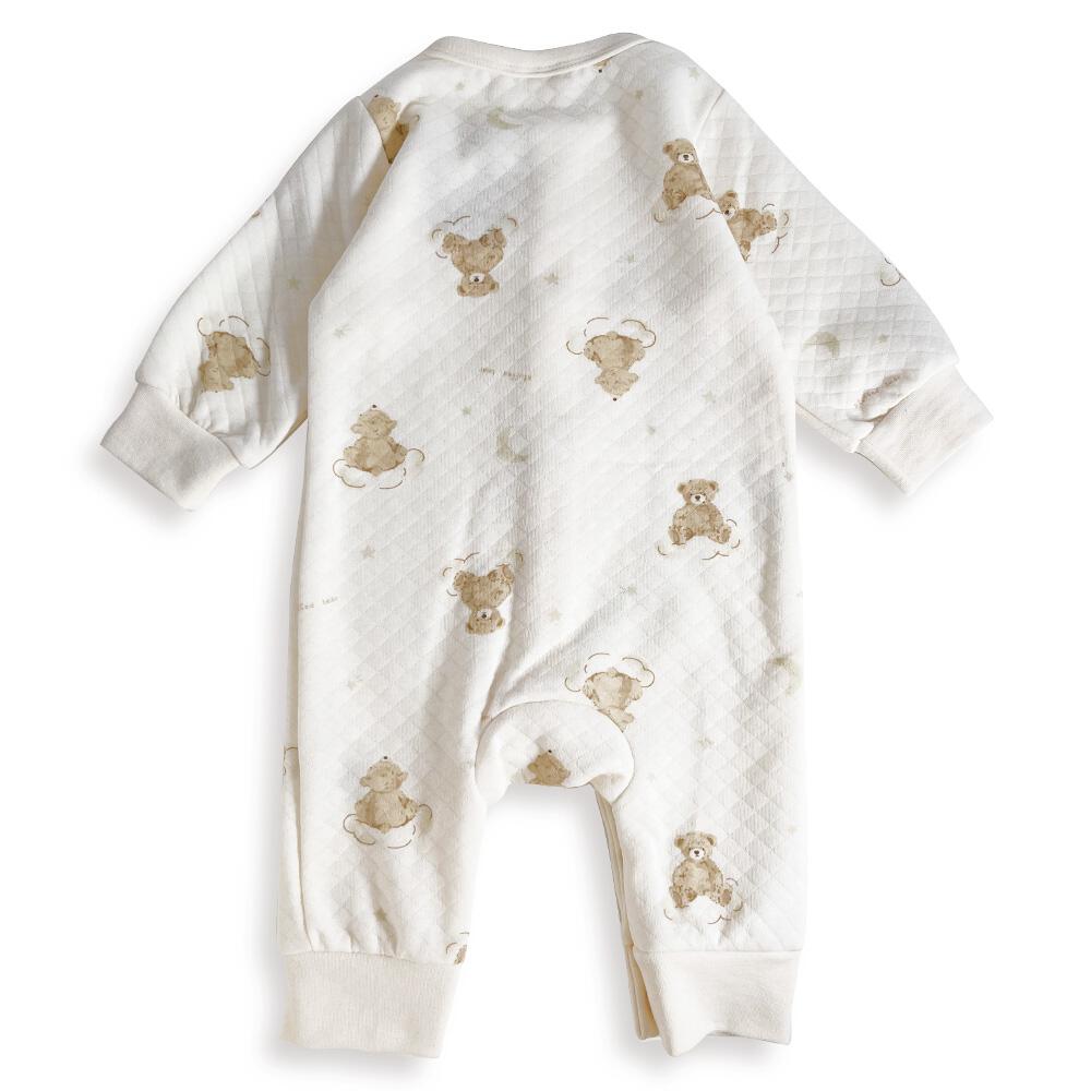前面はスナップボタンで全開できるので、お着替えやおむつ替えもスムーズです。