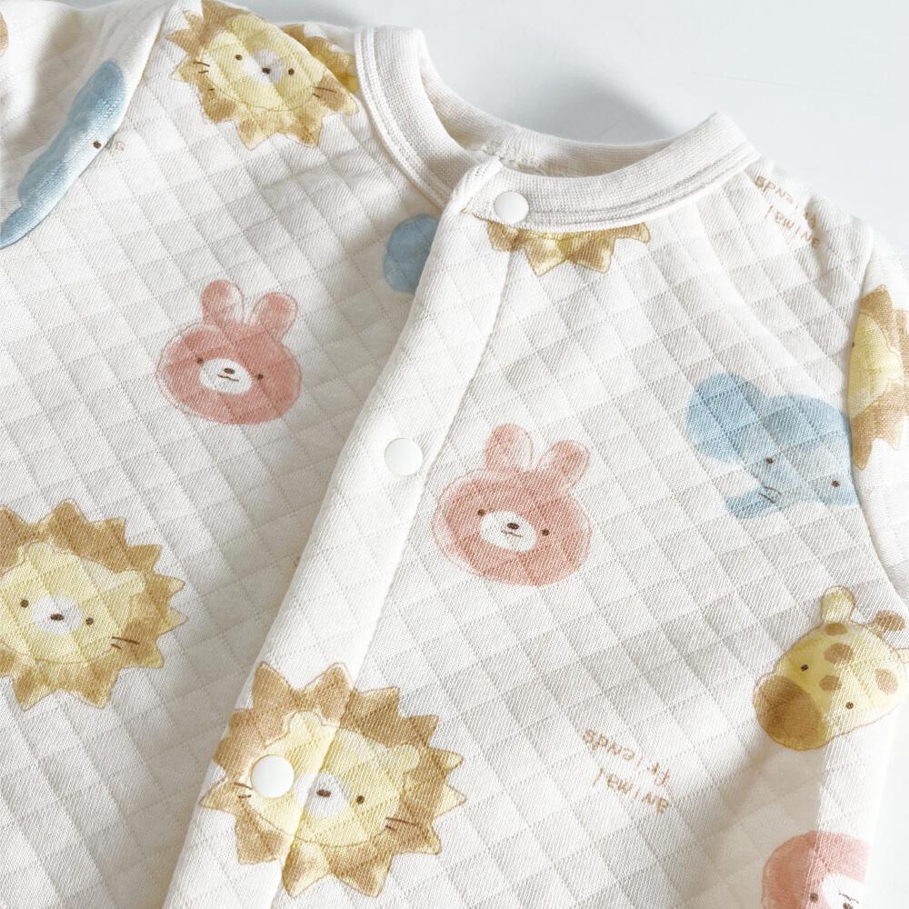 前面はスナップボタンで全開できるので、お着替えやおむつ替えもスムーズです。