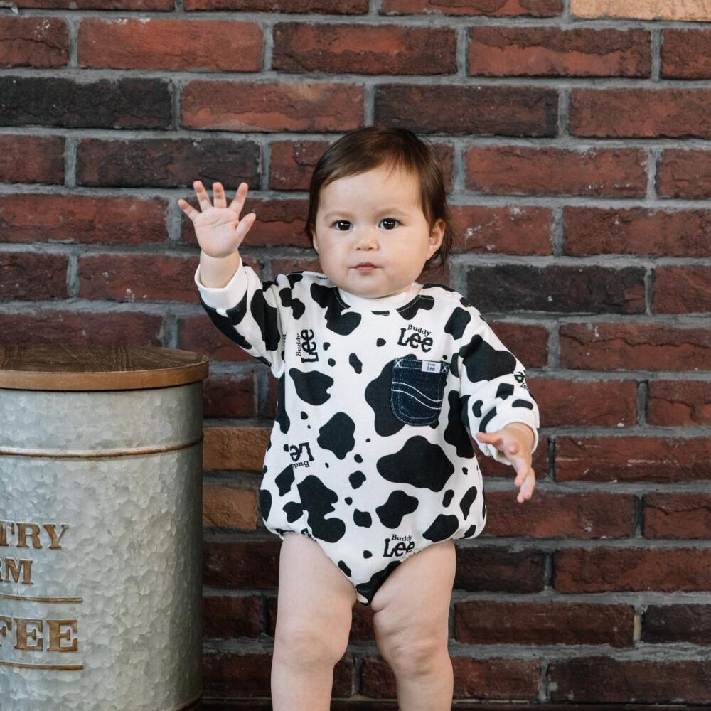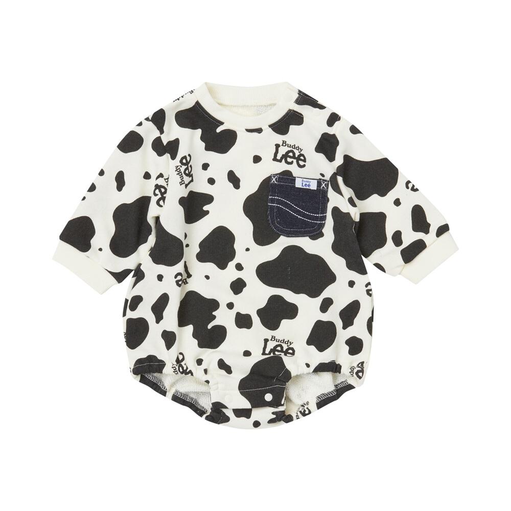 BUDDYLEE 長袖ボディスーツ ガーゼ裏毛 牛柄 ポケット付き ホワイト×80cm ベビーザらス限定