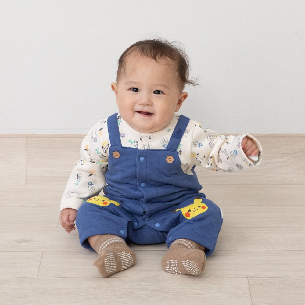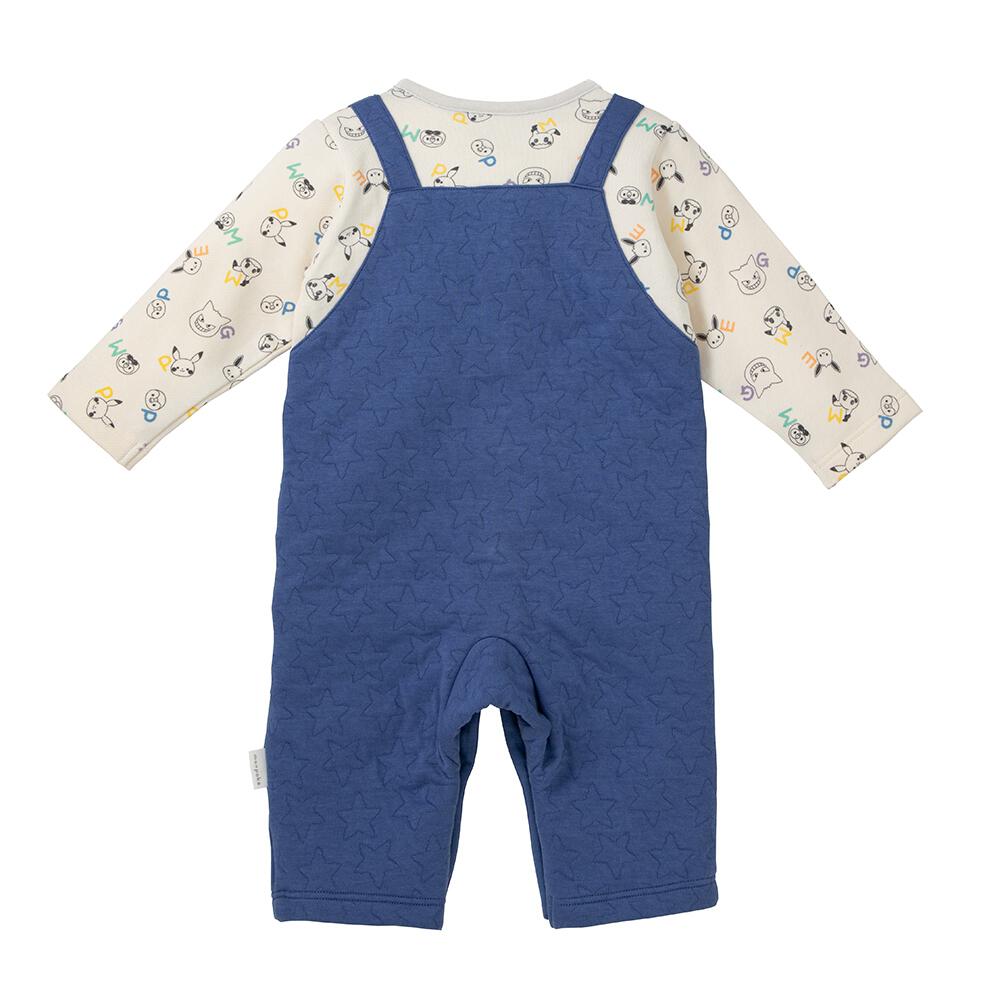 monpoke モンポケ 長袖ロンパース サロペット型 ブルー×70cm