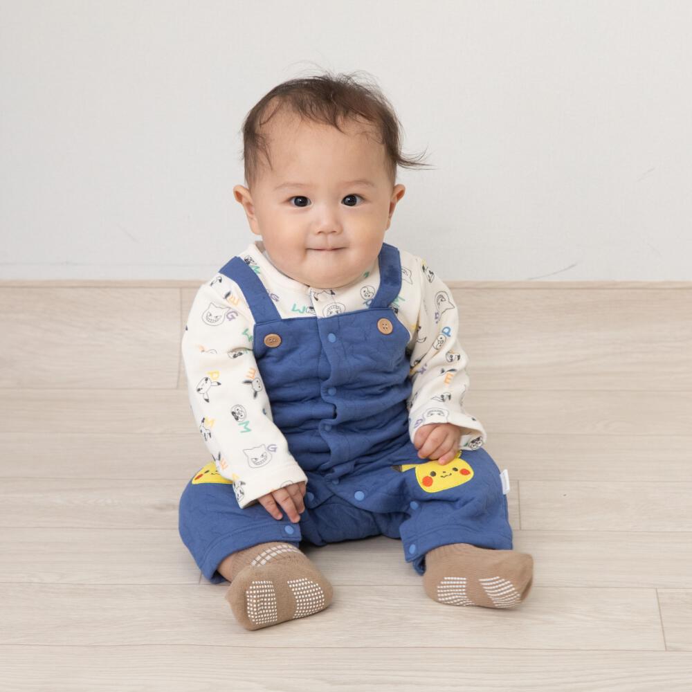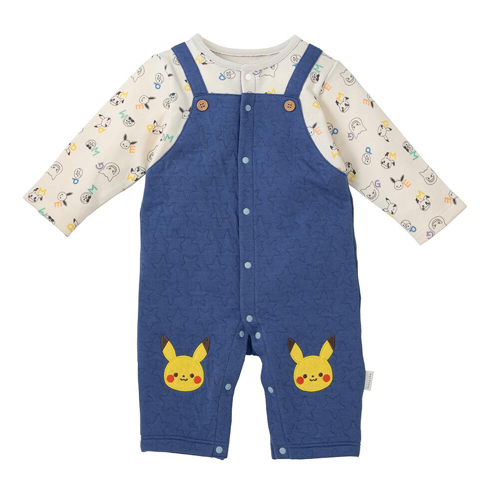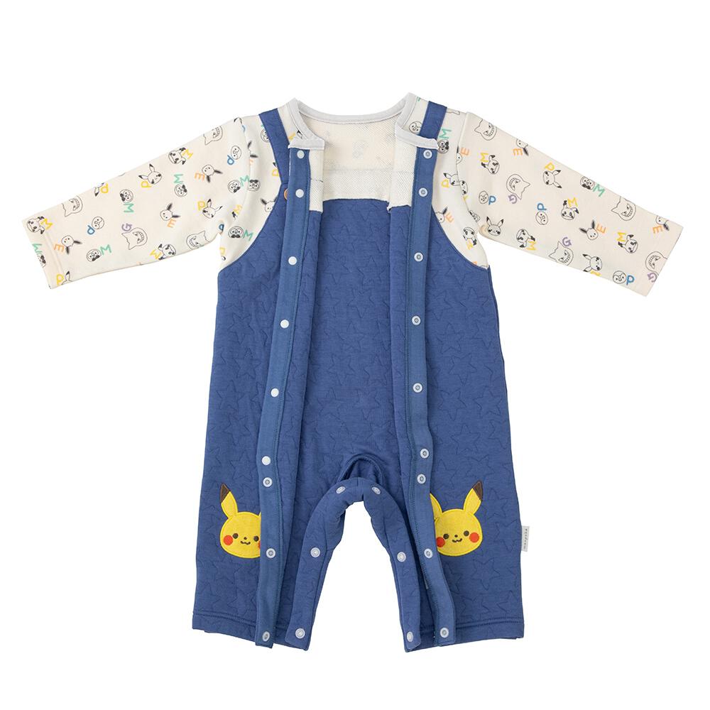 monpoke モンポケ 長袖ロンパース サロペット型 ブルー×80cm