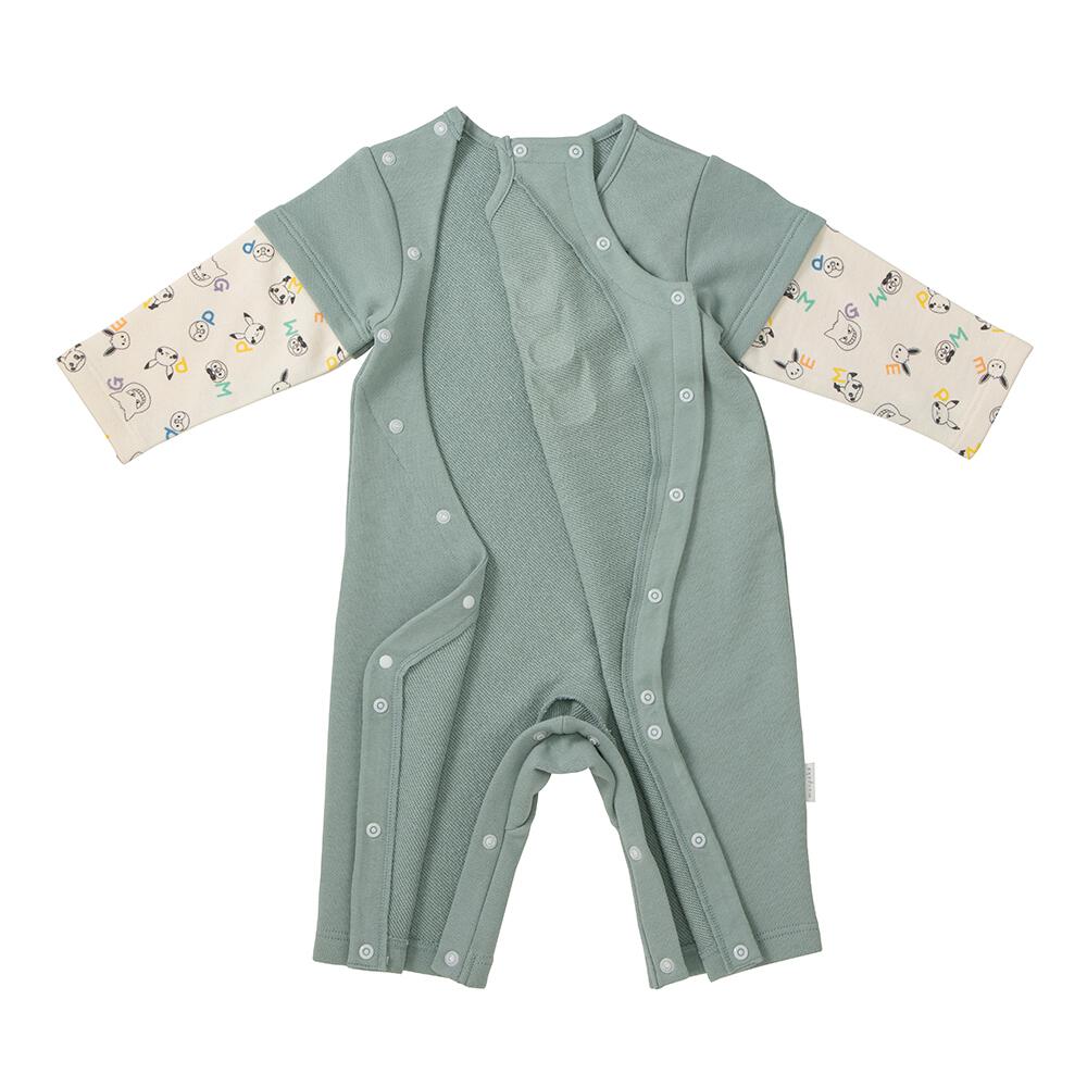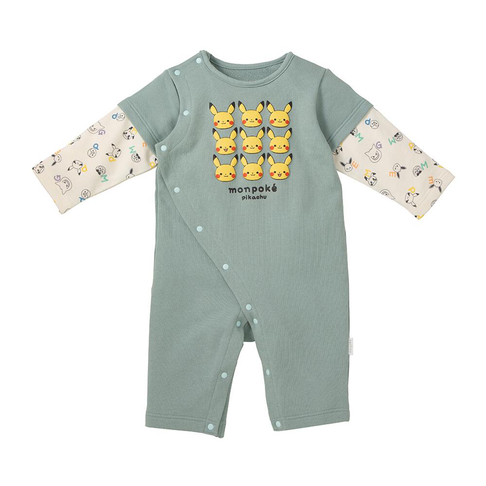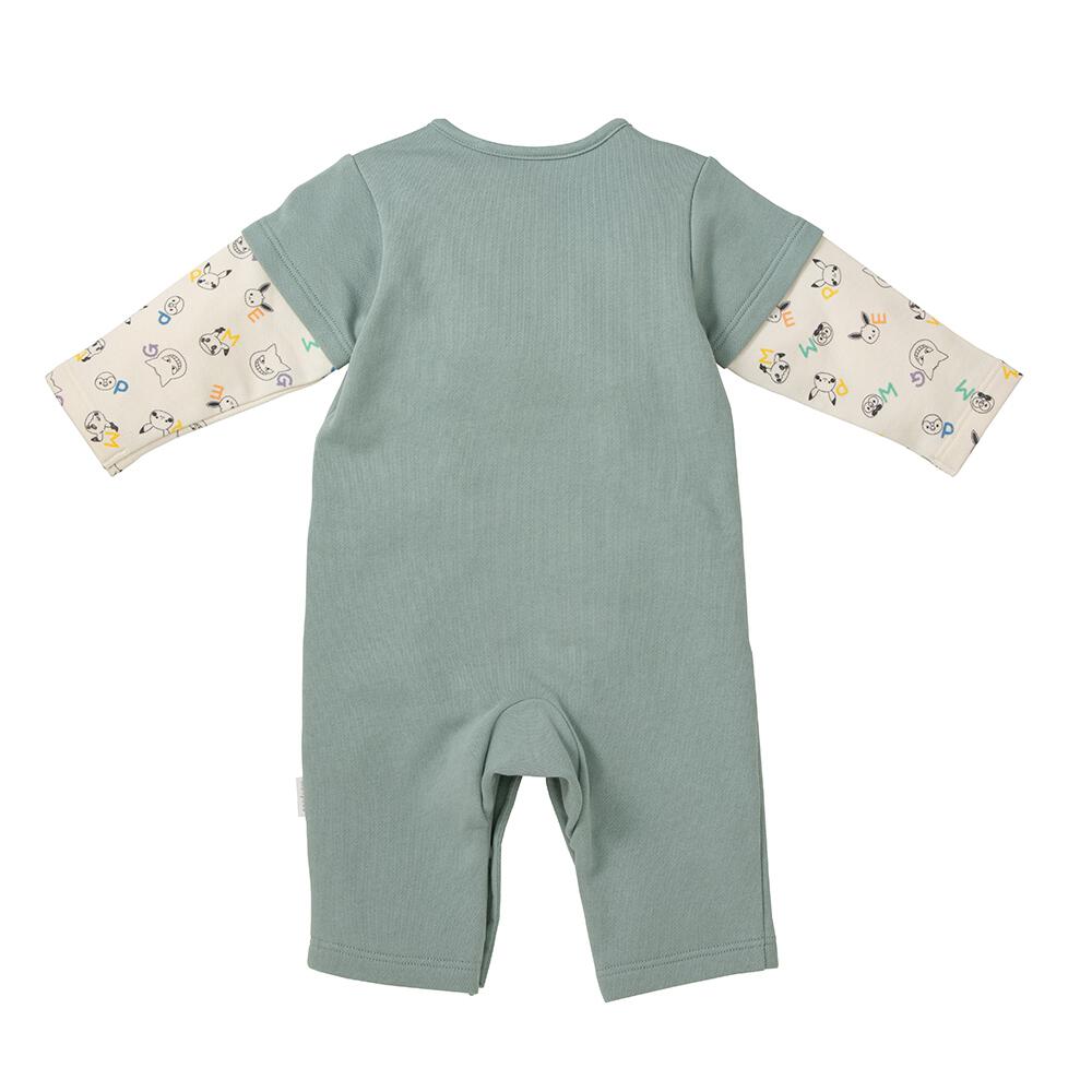 monpoke モンポケ 長袖ロンパース レイヤード調 グリーン×80cm